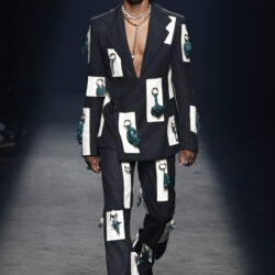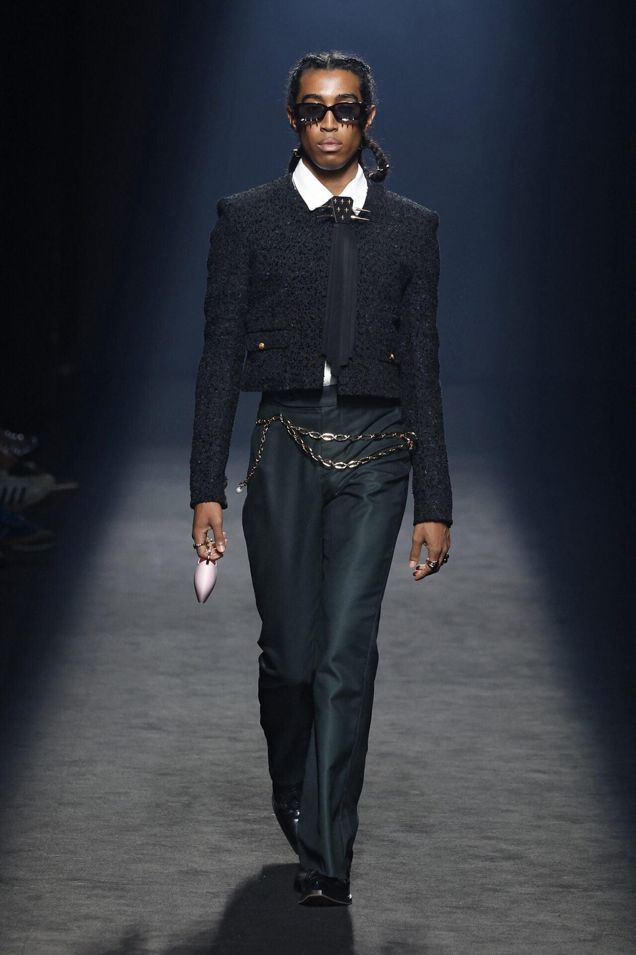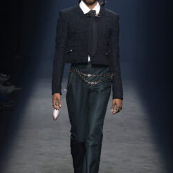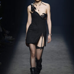 La diseñadora ha creado una colección libre de las limitaciones del tiempo con una renovación del tuxedo, símbolo del estilo más puro. Aparecen toques de lencería en algunas prendas que aportan un detalle femenino junto con lazos.