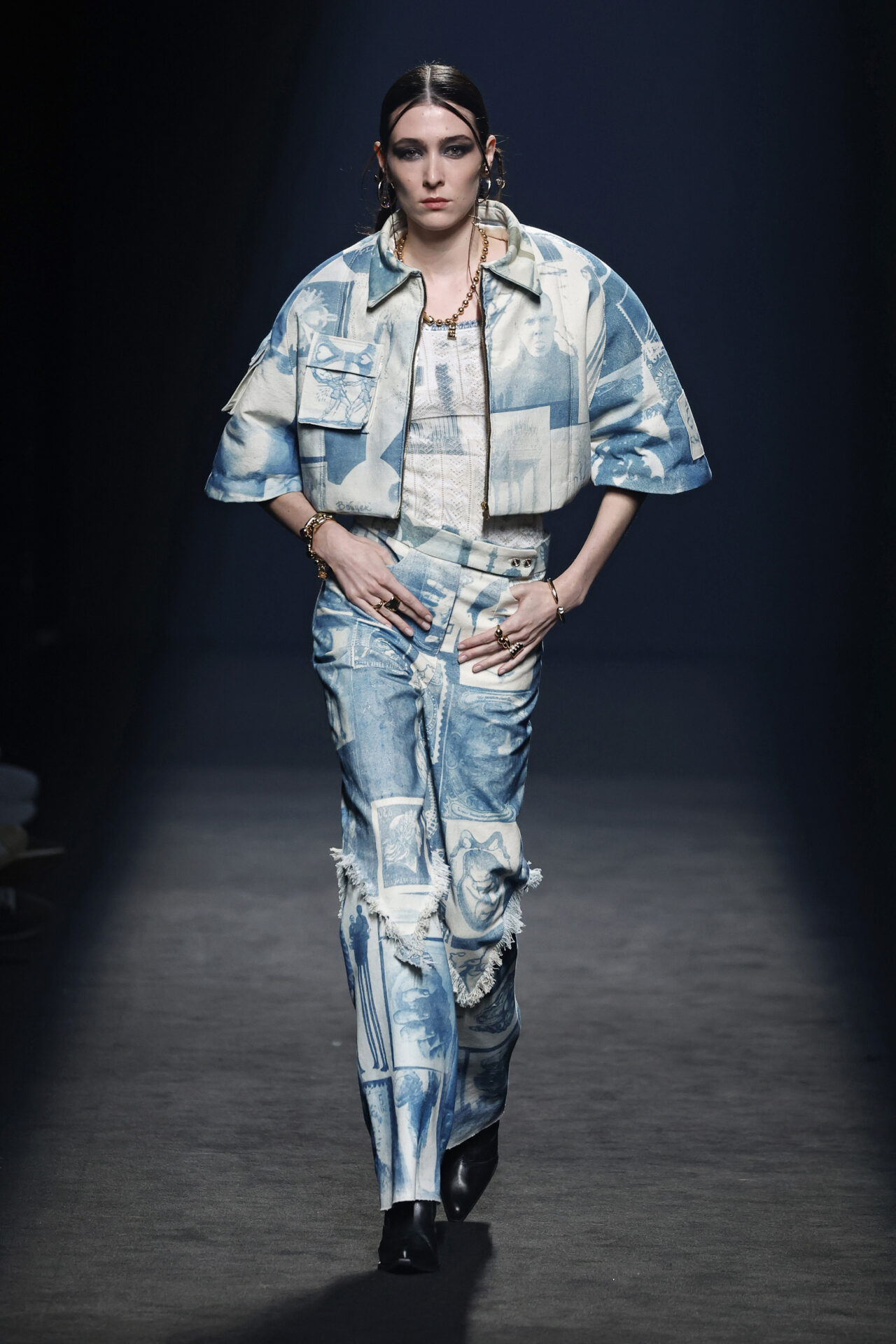 En la colección aparecen volúmenes y construcciones en impresión 3D, señas de identidad de la casa; texturas realizadas a mano y técnicas de revelado sobre tejido como la cianotipia. En cuanto a los tejidos y materiales, la firma apuesta por el sello sostenible destacando la seda, el algodón, la piel y el tencel así como las aplicaciones de inspiración surrealista y los bordados sobre sus clásicas bomber.