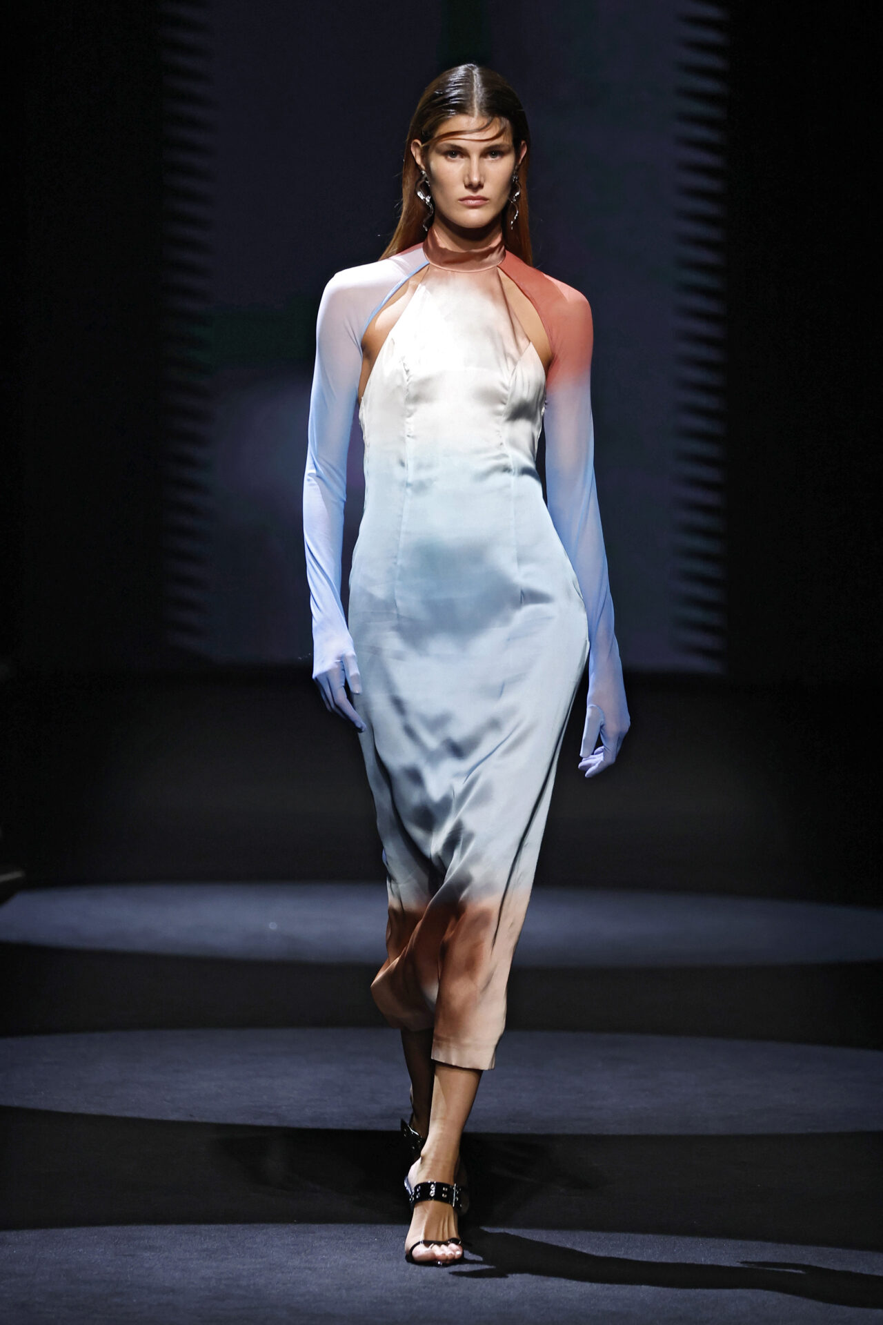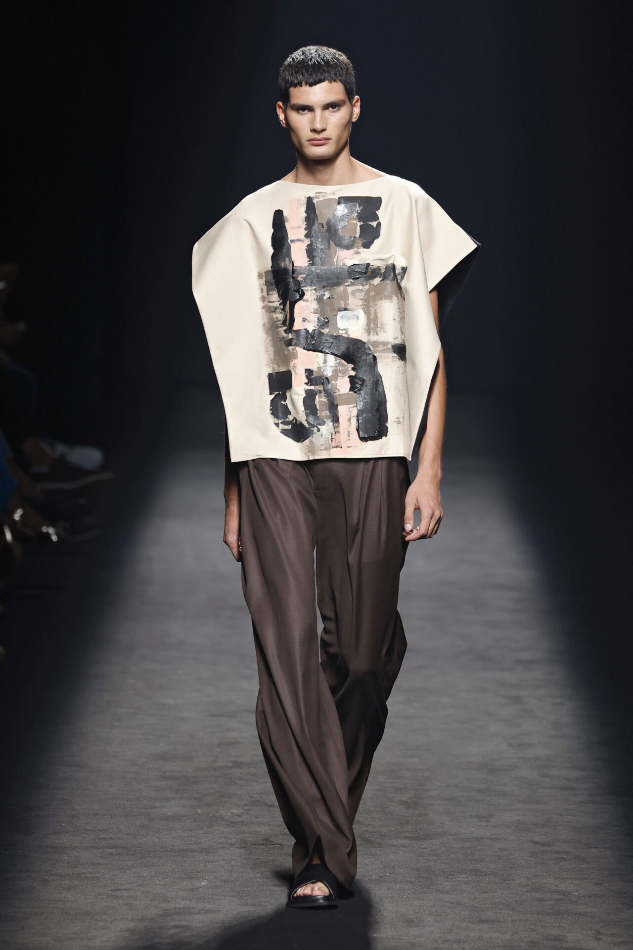 Patrones innovadores y sofisticados, siluetas sexys y oversize, estampados que recuerdan a los atardeceres, una oda al trabajo “de sol a sol” del artesano, plumas, frunces, «cut-outs» y toques goth se materializan en propuestas para el día y la noche gracias a los paños de lana, puntos y crepes de seda, tafetanes, denims desteñidos, tules, tejidos con pedrería y paillettes con motivos florales junto con tejidos artesanos con fibras recicladas y biodegradables.
