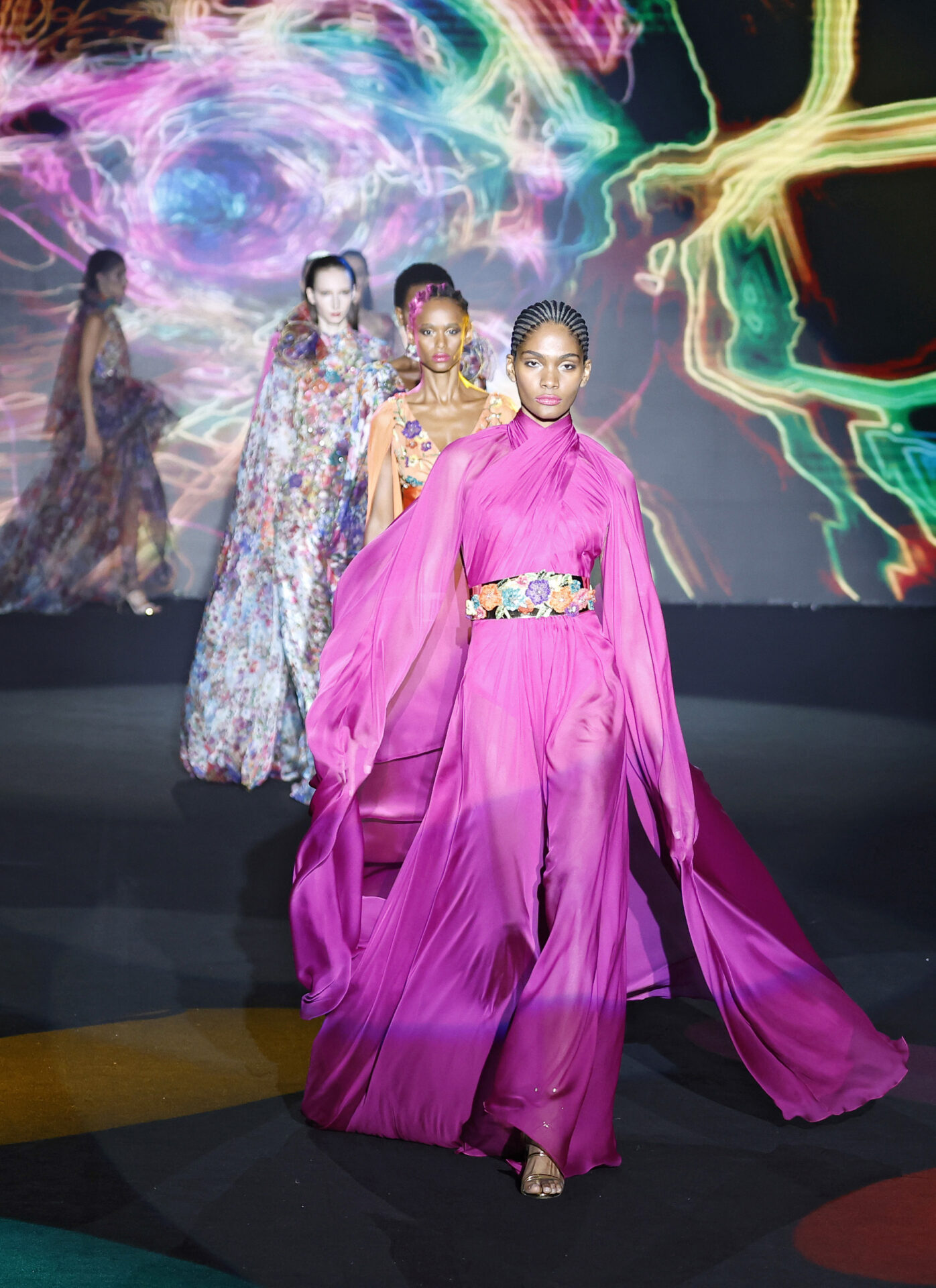 Las cautivadoras siluetas femeninas con el reconocido sello atemporal y contemporáneo de la casa, se presentan en tejidos naturales trabajados con la técnica del moulage y bordados con laboriosos procesos que expresan como la excelencia de los oficios humanizan la artesanía