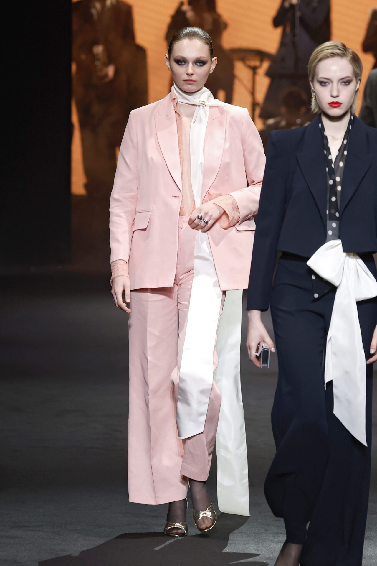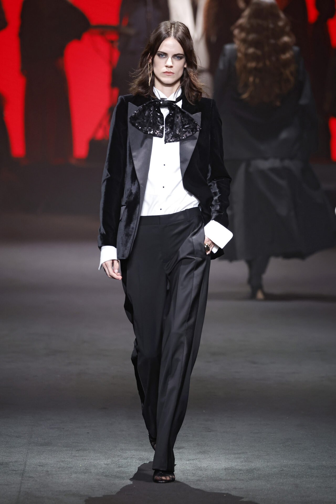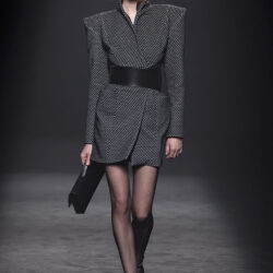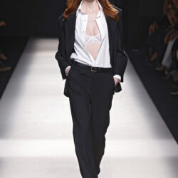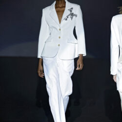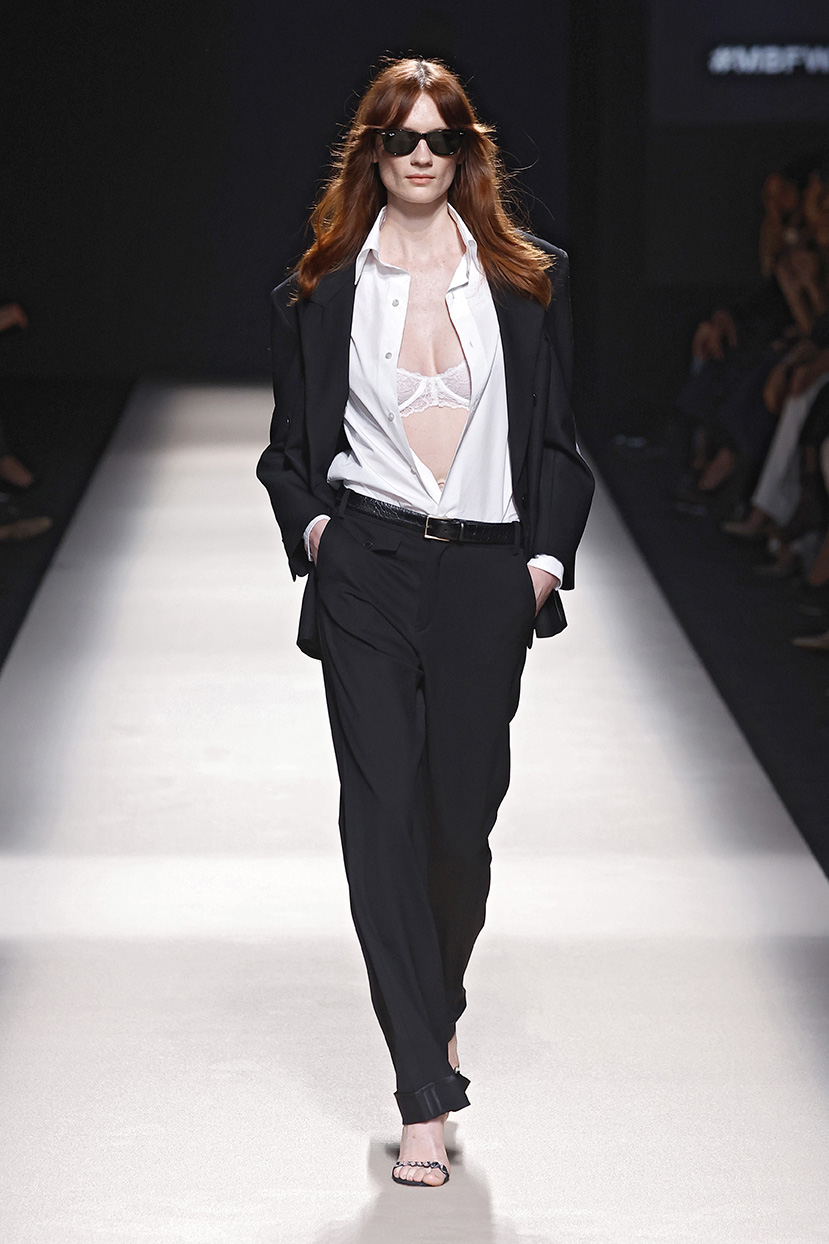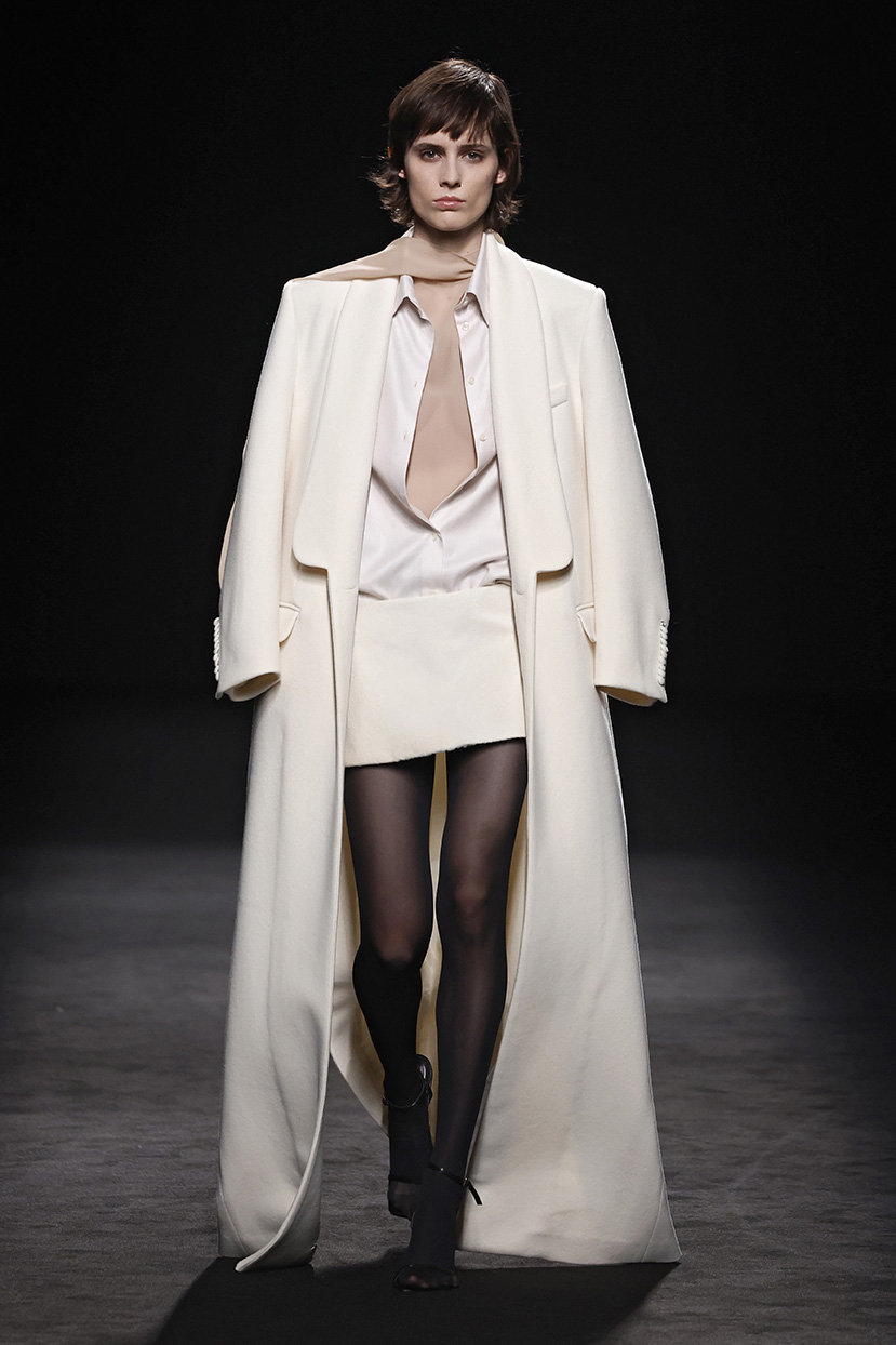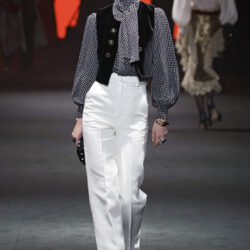 Los códigos de la sastrería masculina se aplican a las prendas femeninas, confrontando prendas como el smoking con pantalones rectos, acampanados o incluso pitillo.