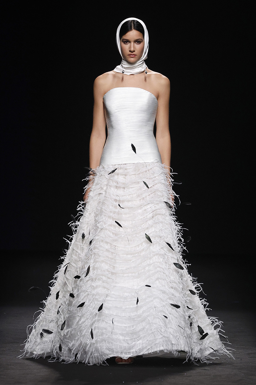 La nueva colección para otoño-Invierno 2025/26 se inspira en las raíces de los diseñadores y busca reinventar los clásicos. Reviviendo la elegancia atemporal: una fusión de patrones clásicos y siluetas modernas que celebra la tradición con un toque contemporáneo, donde las siluetas ajustadas se encuentran con la sofisticación de los trajes estructurados y los corsés que realzan la figura. Las transparencias de tul adornadas con plumas agregan un toque de feminidad audaz, mientras que las estructuras nítidas y los blazers modernos redefinen el poder del estilo. Cada pieza es una celebración de la confianza, la creatividad y la artesanía exquisita diseñada para la mujer que se atreve a brillar.