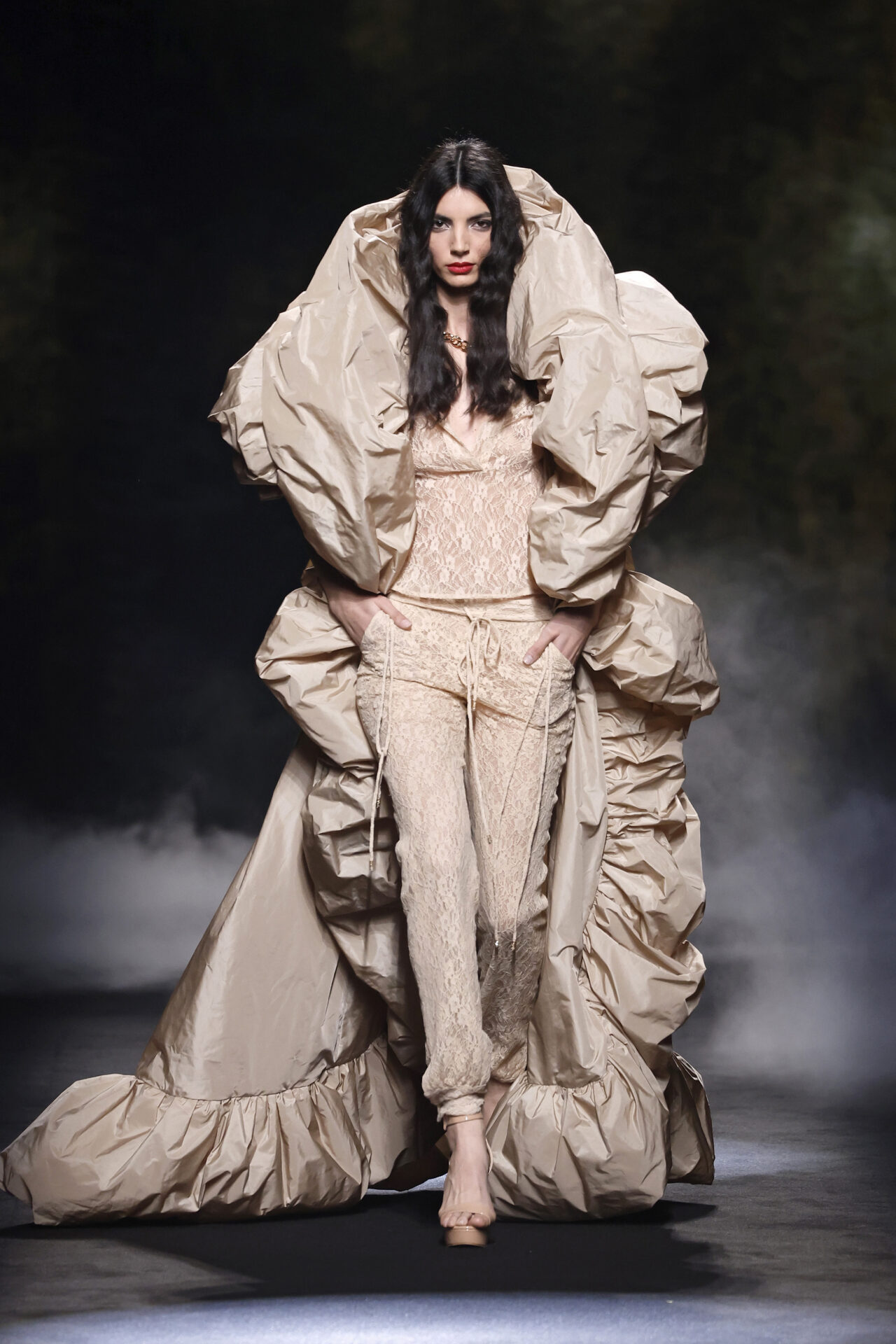 Menchen Tomás. «Bombardeo aéreo». Mercedes Benz Fashion Week. Otoño-Invierno, 2025/2026.