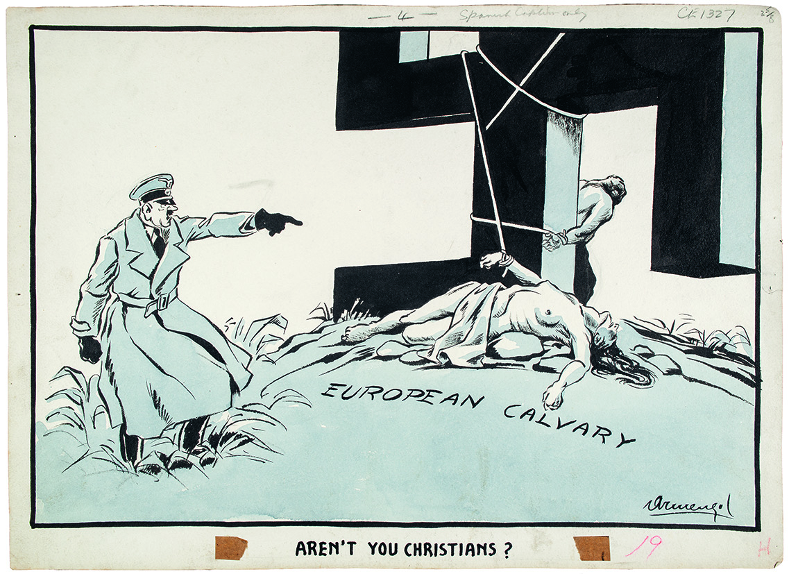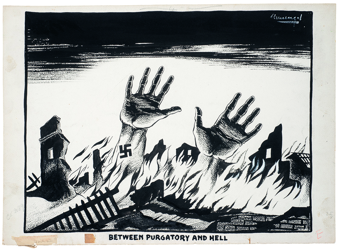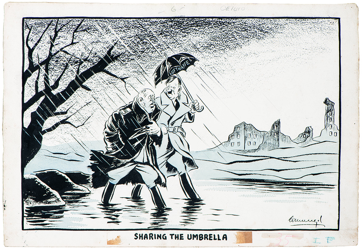 De 1941 a 1945, el artista dibujó más de mil cartoons al servicio del Ministerio de Información británico, dirigidos al Tercer Reich y publicados en diarios y revistas de países aliados o neutrales, desde Londres hasta Nueva Zelanda y Haití.