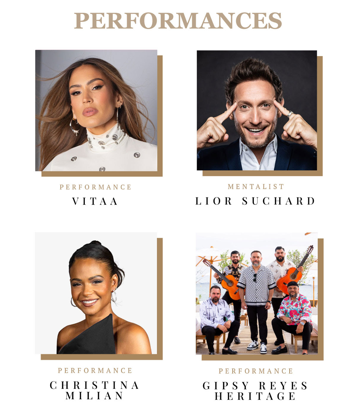 La velada contará con actuaciones en directo de la cantante y actriz estadounidense Christina Milian, la estrella del pop francés Vitaa, el célebre mentalista Lior Suchard y el grupo Gipsy Reyes Heritage, fundado por George Reyes (hijo del líder original de los Gipsy Kings)