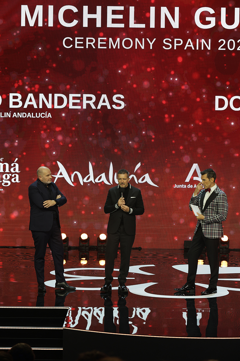 La Guía Michelin ha celebrado su 125 aniversario de la publicación en Málaga con una espectacular puesta en escena luz, escenario, acción… como corresponde al Sohrlin. Porque en la cocina manda la imaginación, la creatividad, el emplatado, como si de una gran obra de teatro se tratara. Así que el espacio, o más bien el sueño del actor Antonio Banderas hecho realidad, ha aparecido teñido de rojo porque el rojo tiene que ver con la pasión, y la pasión por la gastronomía ha reunido en el auditorio a los mejores cocineros de España y Andorra.