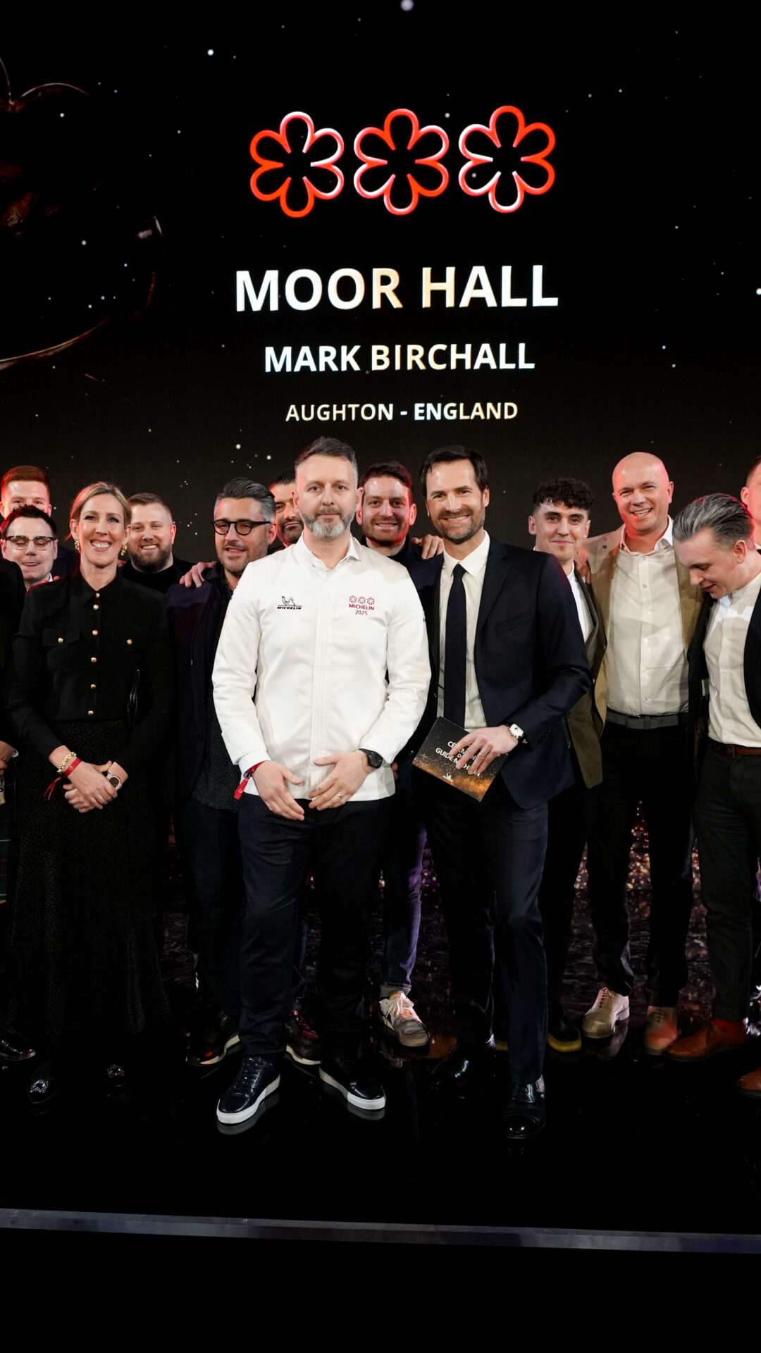 En Moor Hall, el chef Mark Birchall y su equipo alcanza así la máxima distinción de la guía Roja han seguido perfeccionando su oficio y ahora han alcanzado nuevos niveles de excelencia. Los ingredientes, muchos de ellos procedentes del huerto, son excepcionales; la técnica culinaria de los chefs es enormemente impresionante; y el juicio de los sabores, de cuándo priorizar la simplicidad y cuándo añadir complejidad, es ejemplar. Esta nueva incorporación a la familia de las tres Estrellas eleva a 10 el número total de restaurantes que ofrecen una «cocina única».