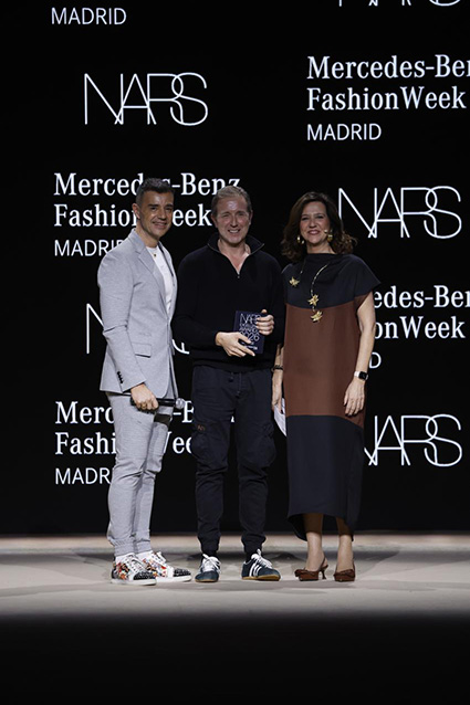 José Belmonte fue reconocido con el Premio NARS al Mejor Maquillador, entregado por Frans Reina, CEO de Shiseido, un nombre fundamental en la estética de la pasarela española durante más de 25 años. Con una carrera sólida y ampliamente respetada, Belmonte ha demostrado un dominio técnico excepcional y una creatividad que transforma cada look en una extensión del concepto artístico de los diseñadores. Su visión, su rigor y su capacidad para marcar tendencia desde el backstage lo convierten en un maestro del maquillaje editorial y de pasarela, así como en una pieza clave en la evolución de la moda española contemporánea