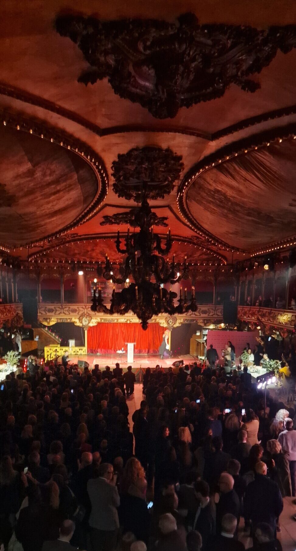 Como viene siendo habitual en los últimos cuatro años, la fiesta (a la que todo el mundo quiere asistir) se ha celebrado en la histórica sala de baile La Paloma, situada en el barrio del Raval de Barcelona. El local se caracteriza por su ambiente barroco, sus palcos, sus pinturas con escenas de baile y una gran nave central coronada por una gran lámpara dorada que ha acogido, bajo la calidez de su luz, a más de 700 invitados.