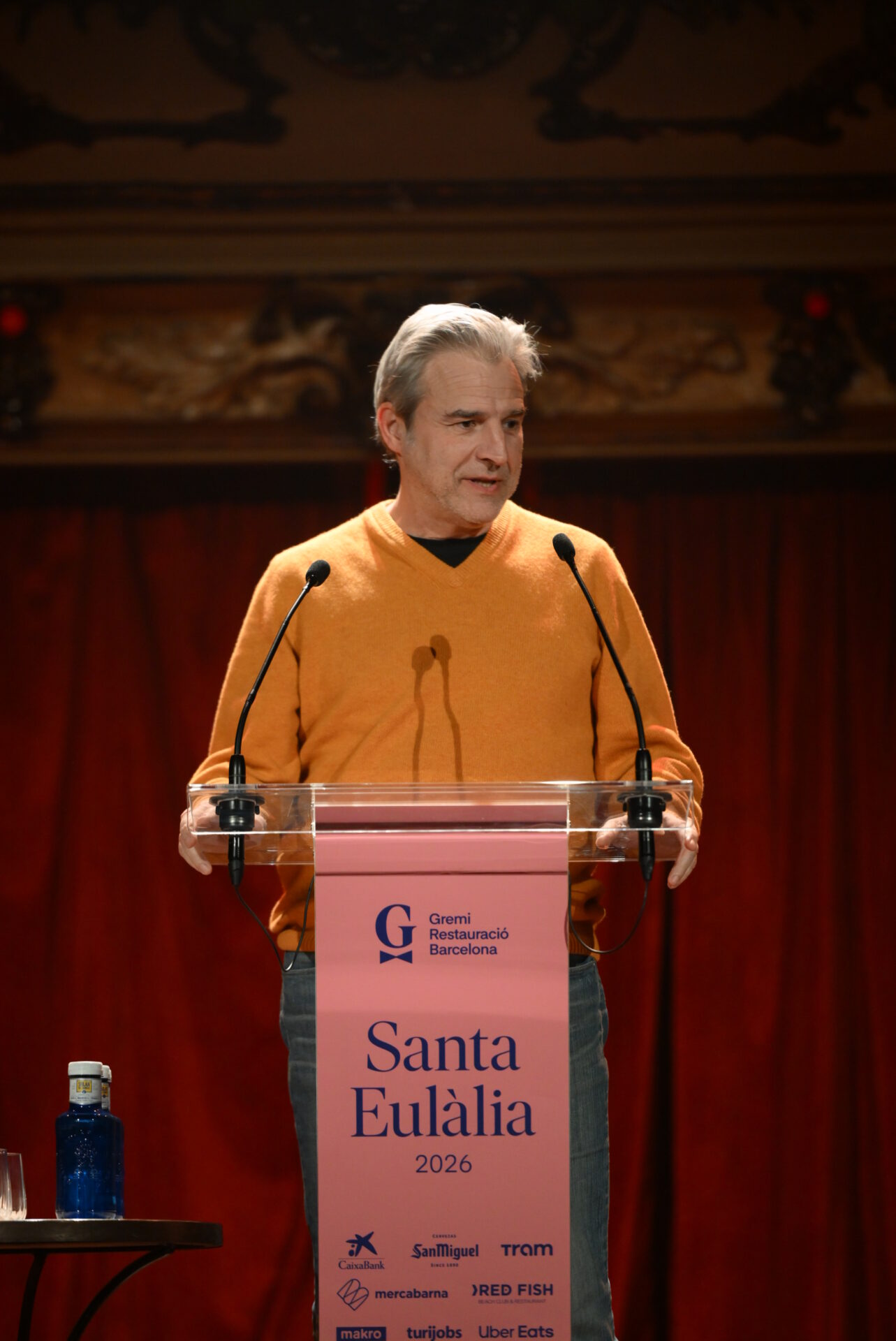 El actor tomó la palabra e hizo un recorrido por su historia vital, por el cariño que siente por esta ciudad, y recordó a la desaparecida actriz Rosa María Sardá, quien en un momento determinado le hizo de guía y le ayudó a descubrir algunos de los barrios más emblemáticos y los mejores restaurantes de la ciudad, como Cal Pinxo o el 7 Portes.