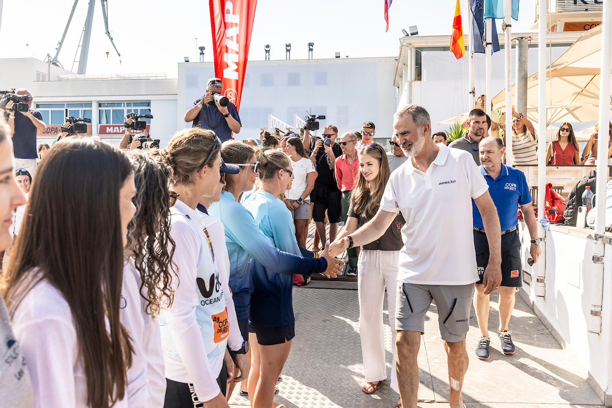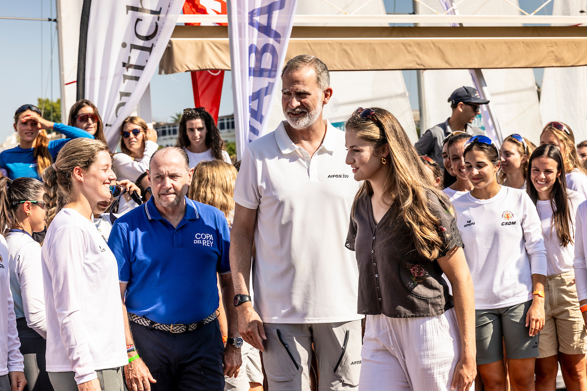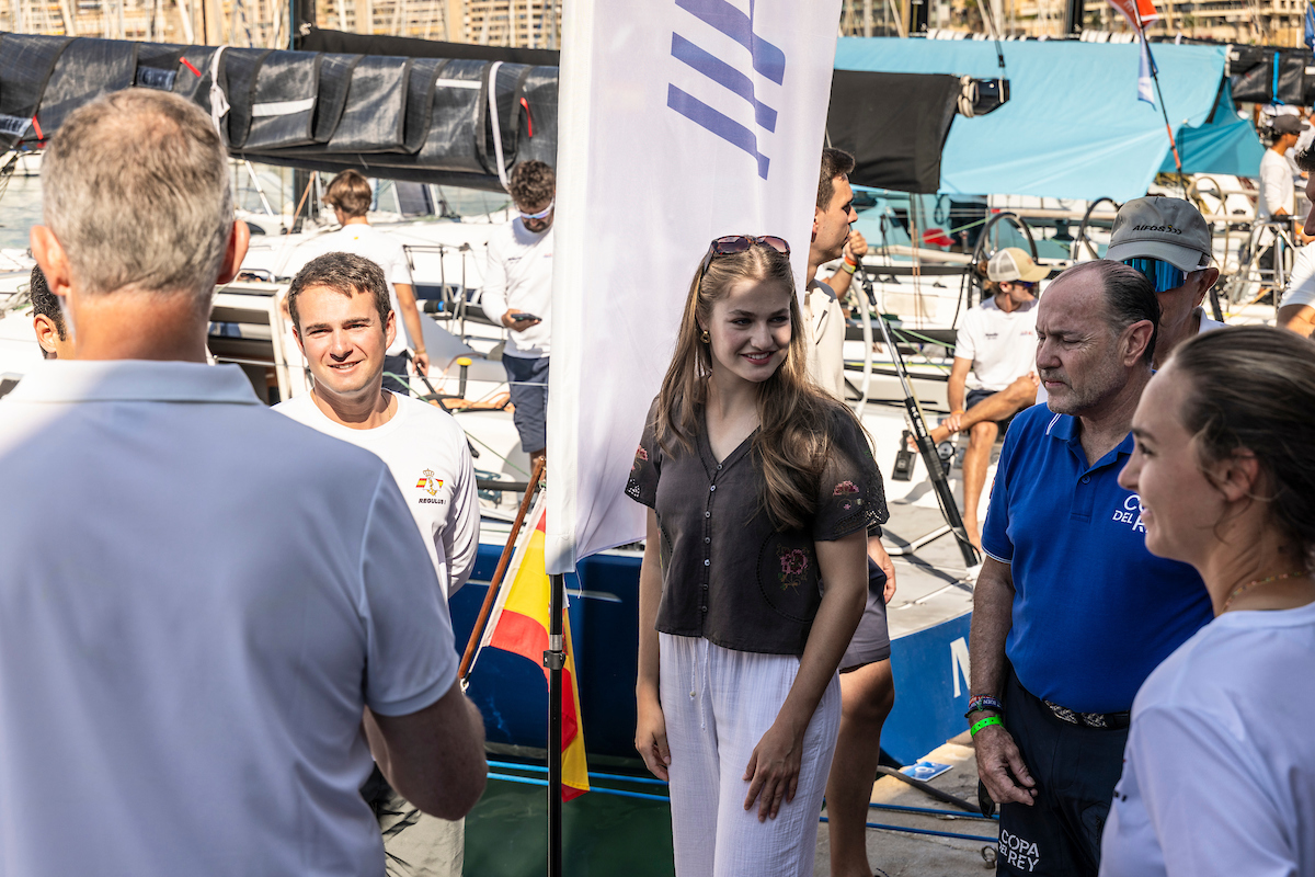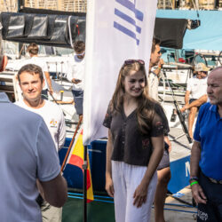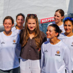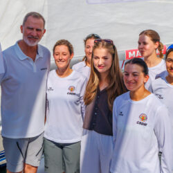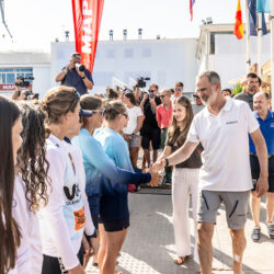 No ha sido así, pero sí se ha acercado a las instalaciones del Club Naútico acompañando a su padre, ambos se han mostrado naturales y sonrientes y han creado un ambiente muy distendido a su alrededor. Se han acercado a saludar a las tripulaciones de la Women ‘s Cup, también a las cuatro embarcaciones de la Armada y al equipo del Aifos. Después el Rey aprovechó para enseñar a la princesa alguna de las instalaciones del club. Más tarde, el Rey Felipe VI ha embarcado para competir en la última jornada de la regatas, y la princesa Leonor ha regresado al Palacio de Marivent. Fotos: Casa Real y Copa del Rey Mapfre