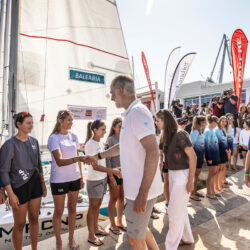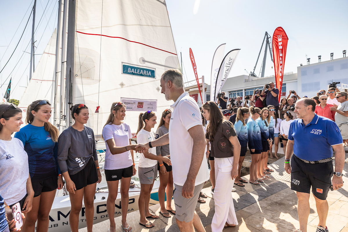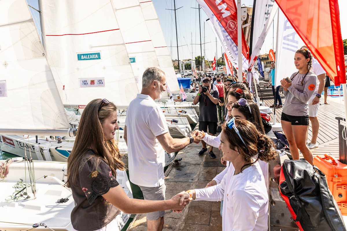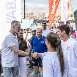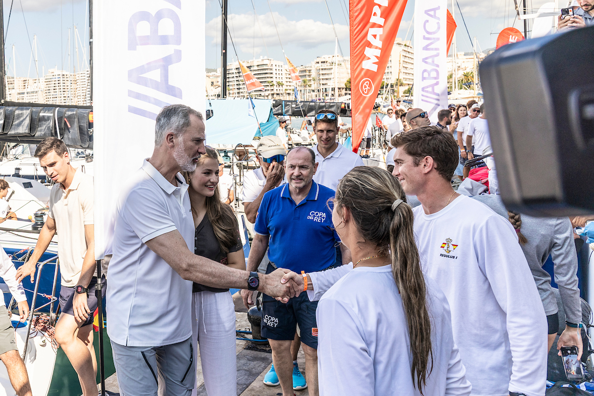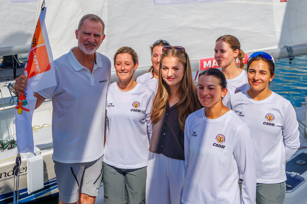 No ha sido así, pero sí se ha acercado a las instalaciones del Club Naútico acompañando a su padre, ambos se han mostrado naturales y sonrientes y han creado un ambiente muy distendido a su alrededor. Se han acercado a saludar a las tripulaciones de la Women ‘s Cup, también a las cuatro embarcaciones de la Armada y al equipo del Aifos. Después el Rey aprovechó para enseñar a la princesa alguna de las instalaciones del club. Más tarde, el Rey Felipe VI ha embarcado para competir en la última jornada de la regatas, y la princesa Leonor ha regresado al Palacio de Marivent. Fotos: Casa Real y Copa del Rey Mapfre