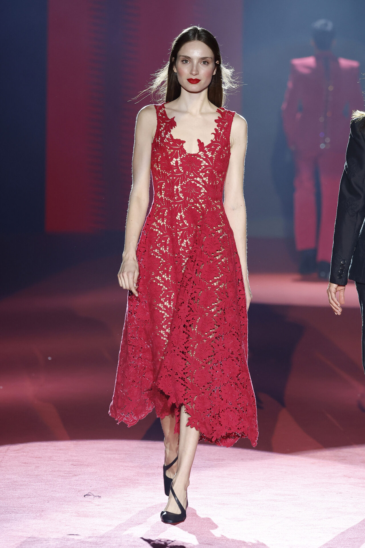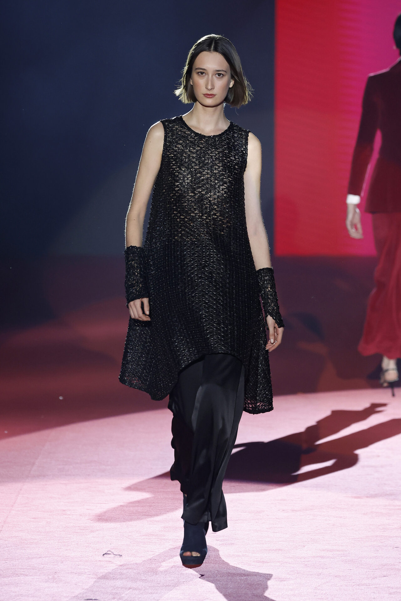 La colección que ha presentado para el próximo otoño Invierno 2023/24 es seductora, fuerte. En ella, los tejidos y formas muestran la unión entre la artesanía tradicional y las técnicas más vanguardistas creando piezas espectaculares que parten desde un prêt-à-porter más reconstruido, con imponentes hombreras, dejando a la vista partes del cuerpo en chaquetas, faldas y vestidos, drapeados fluidos, elegantes y sexys, y piezas escultóricas que muestran detalles suspendidos en el aire.