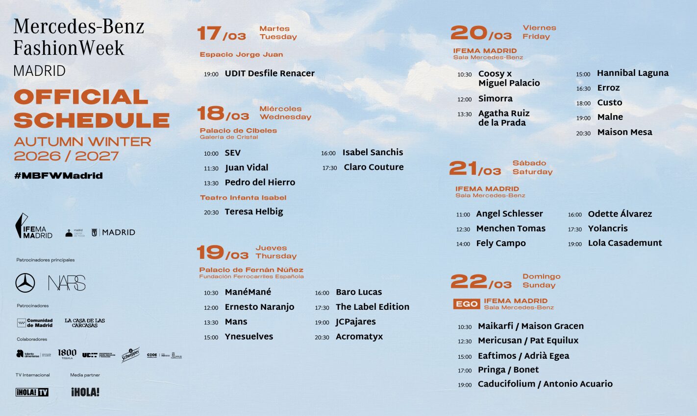 Del 17 al 22 de marzo, Madrid volverá a convertirse en epicentro de la moda con una nueva edición de Mercedes-Benz Fashion Week Madrid (MBFWMadrid). La pasarela organizada por IFEMA MADRID, con el apoyo del Ayuntamiento de Madrid, desplegará un calendario de cinco jornadas que recorrerá distintos enclaves emblemáticos de la ciudad: Palacio de Cibeles, Teatro Infanta Isabel, Palacio de Fernán Núñez e IFEMA MADRID.