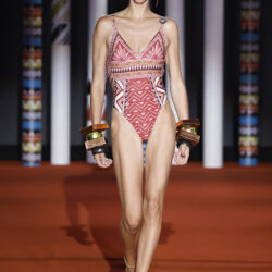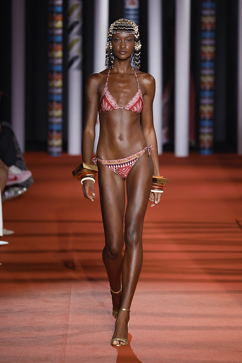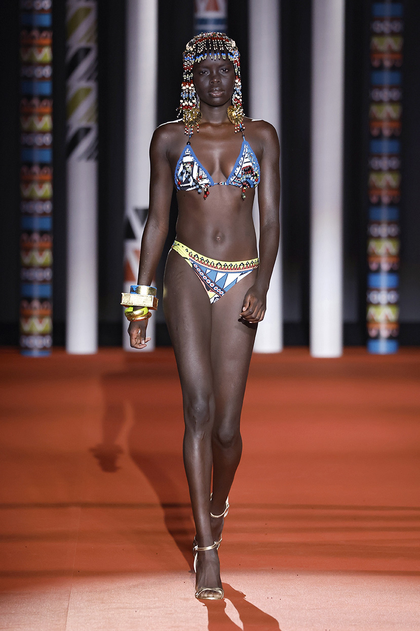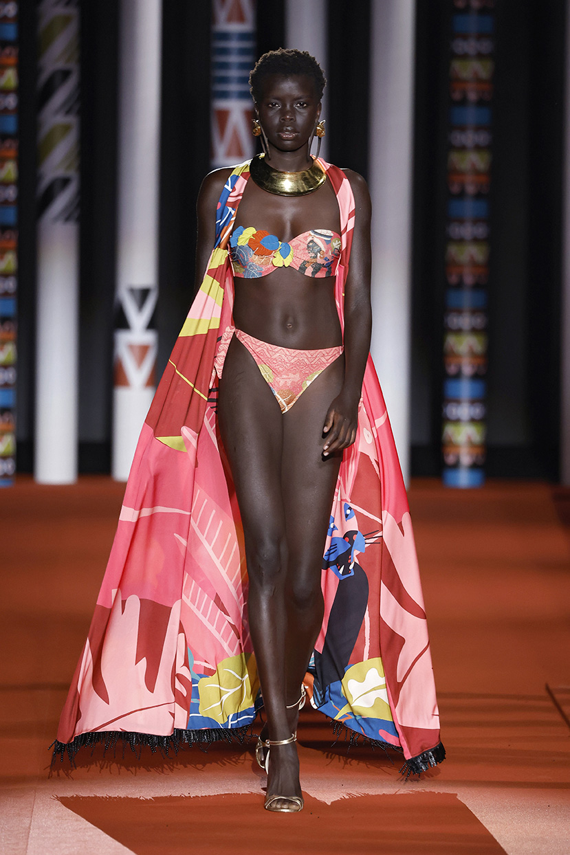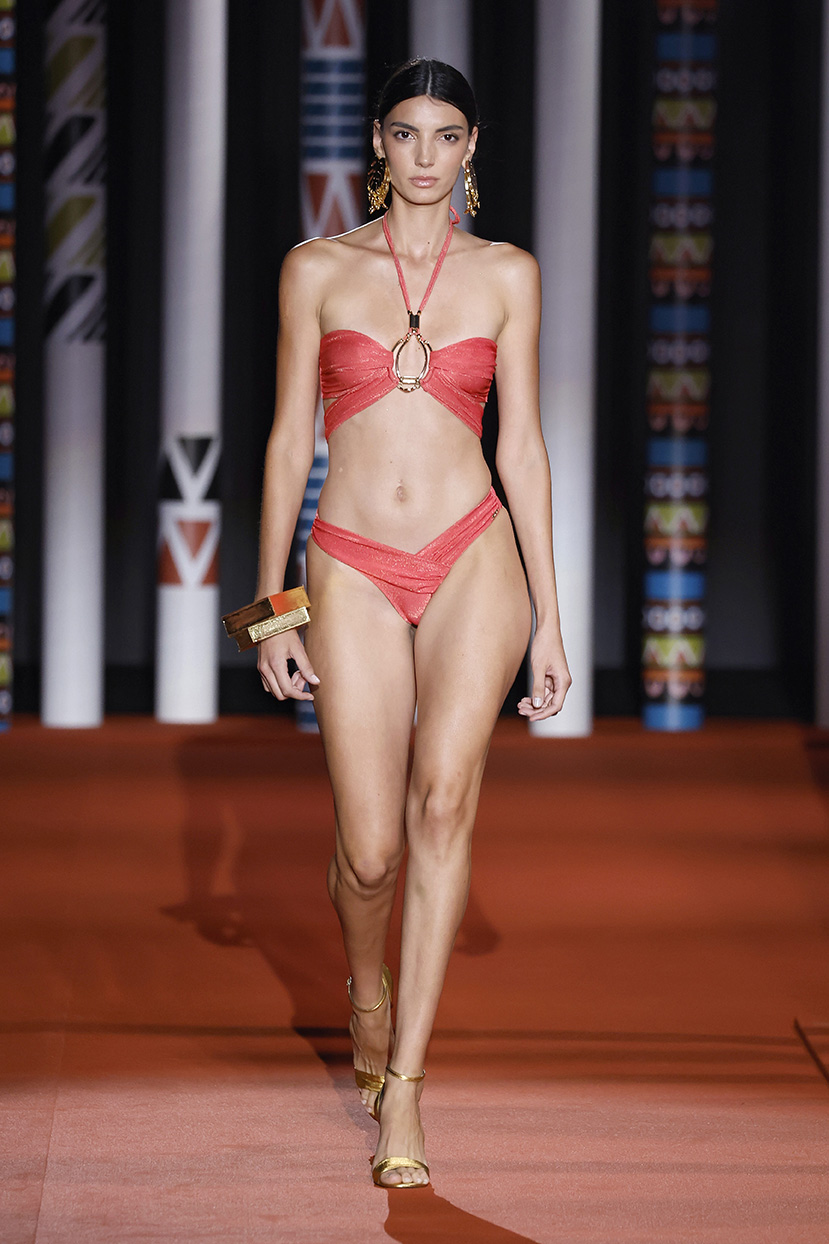Inspirándose en esa riqueza cultural, la nueva colección de trajes de baño bikinis, faldas, túnicas, pareos, están concebidas como un lienzo donde las formas se expanden e interactúan con el cuerpo para crear composiciones visualmente impactantes, llenas de movimiento y personalidad.