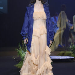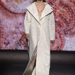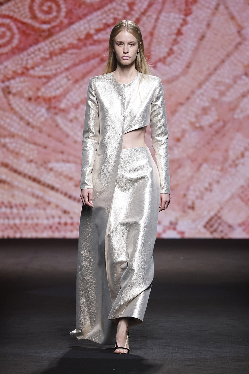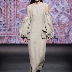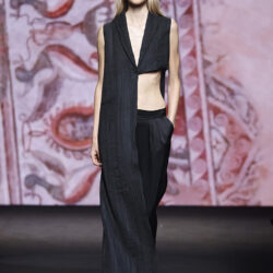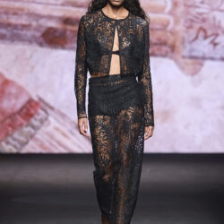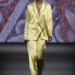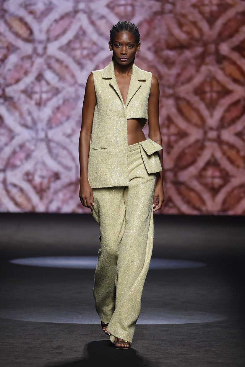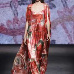 La diseñadora canaria celebra los 10 años de la marca, una década de creatividad y compromiso con sus orígenes. La colección rinde homenaje a su isla natal, la Palma, fusionando lujo, innovación y la energía volcánica que dio origen a la diseñadora. Cada pieza refleja exclusividad, historia y fuerza interior, adaptándose al contexto actual sin perder su identidad. Con estampados digitales, la colección destacó por sus prints que evocan formaciones rocosas. Un tributo a la perseverancia, la autenticidad y la pasión que han definido su carrera. La puesta en escena fue de carácter preformativo, e incluyó música en vivo y danza.