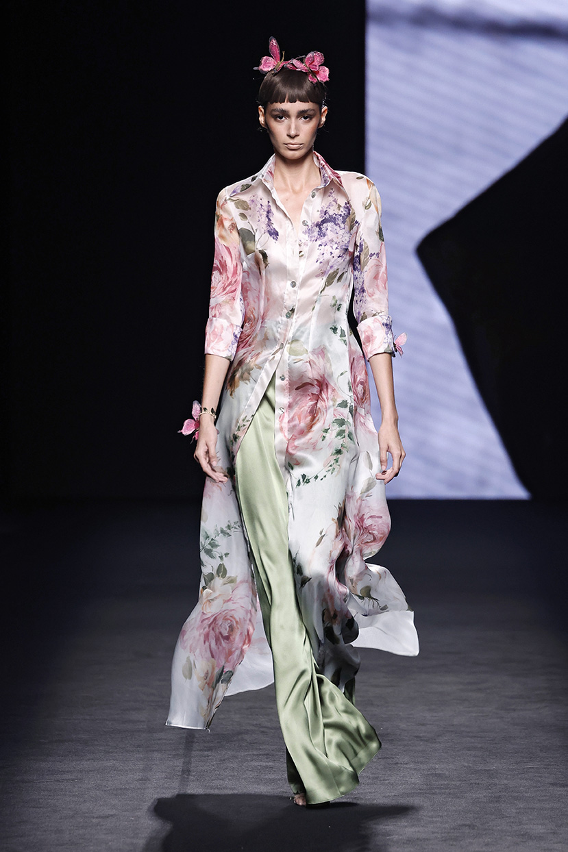 La paleta de colores abarca desde el blanco, salpicado de flores y bordados hechos a mano, pasando por telas de seda pintadas, estampados florales con efecto mojado, hasta el negro, un color que para la marca Malne La Maison es imprescindible en todas sus colecciones.
