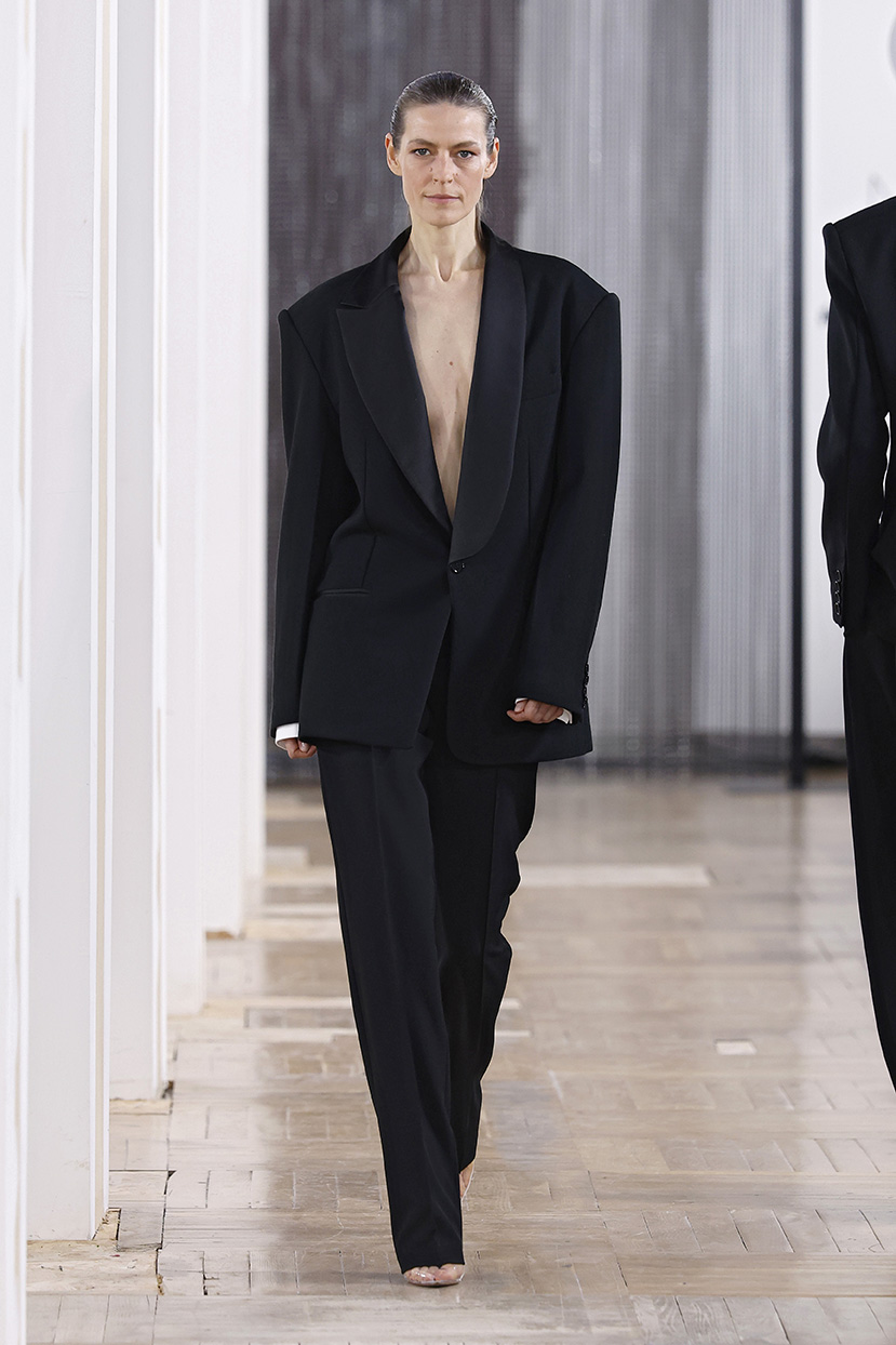 “Babylone” es una colección inspirada en el universo personal, creativo y eterno de Loulou de la Falaise, concebida como un viaje íntimo y sensorial. La colección explora la dualidad que definía su estilo: la fuerza de ciertos códigos masculinos en la sastrería convive con la libertad femenina de volúmenes suaves y fluidos.