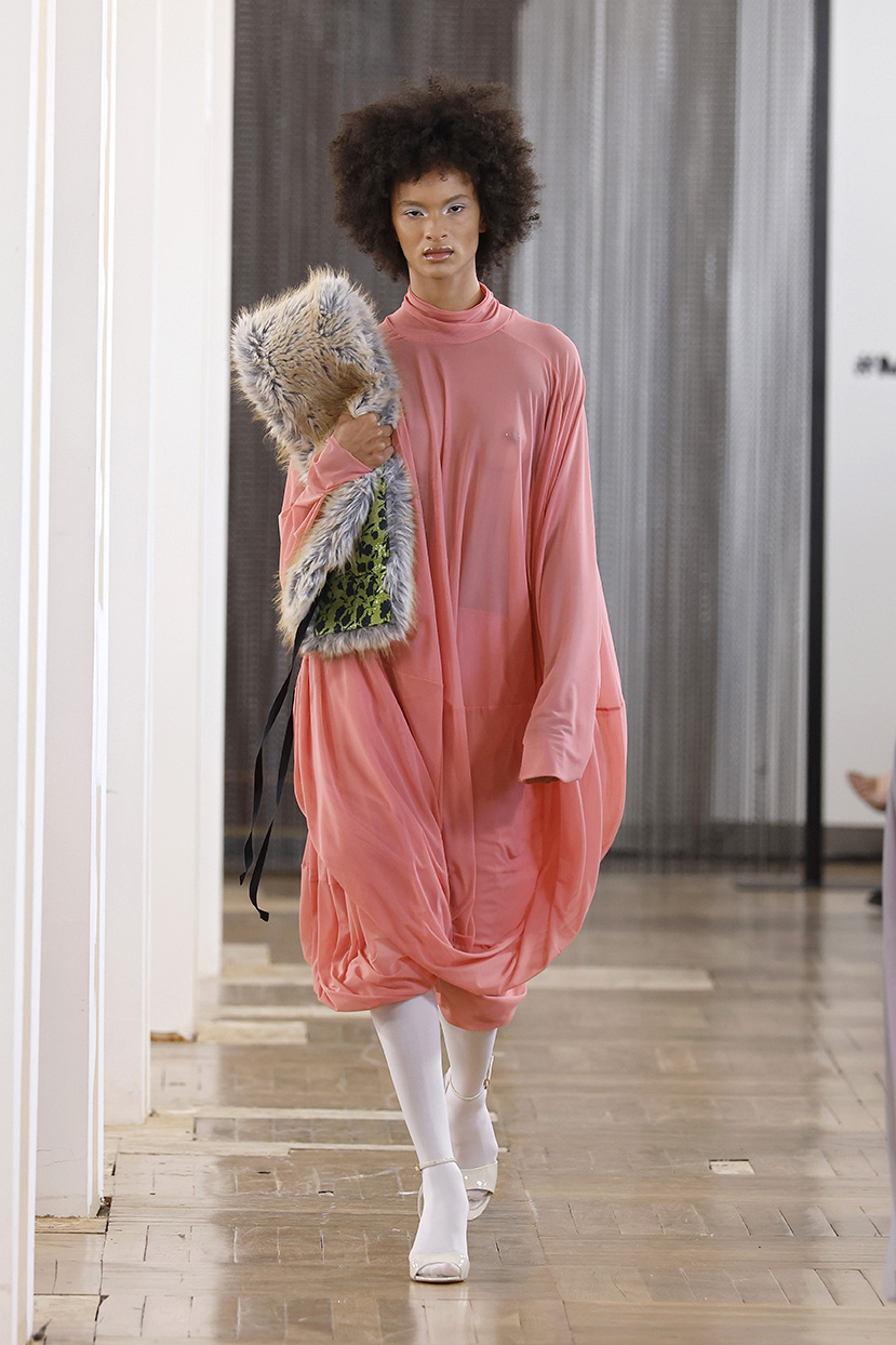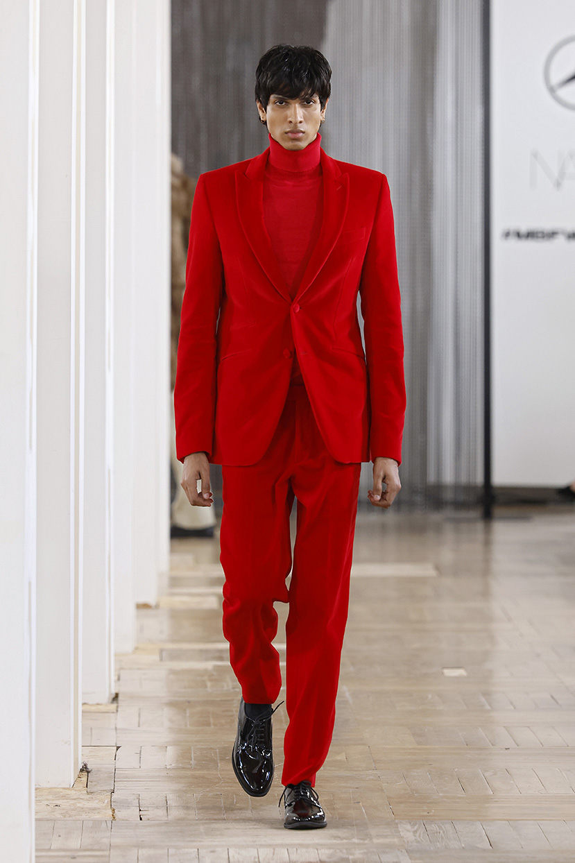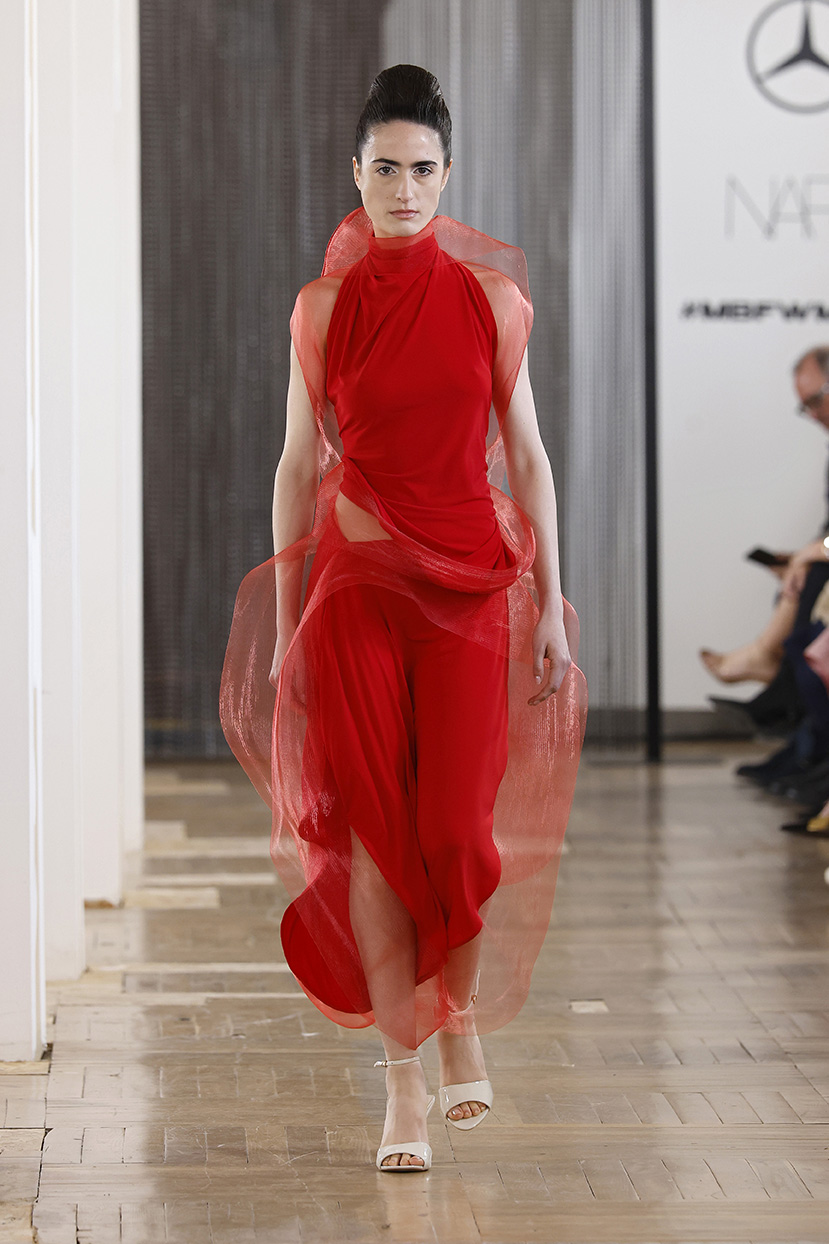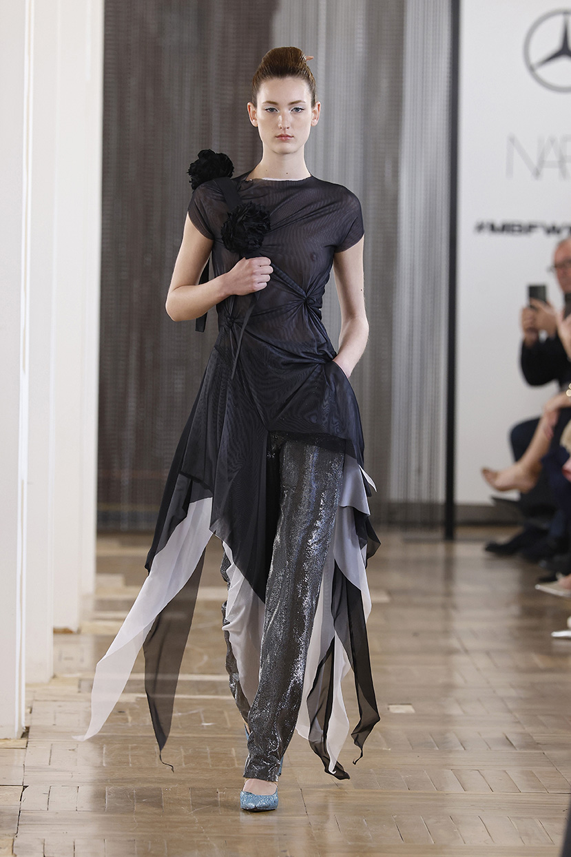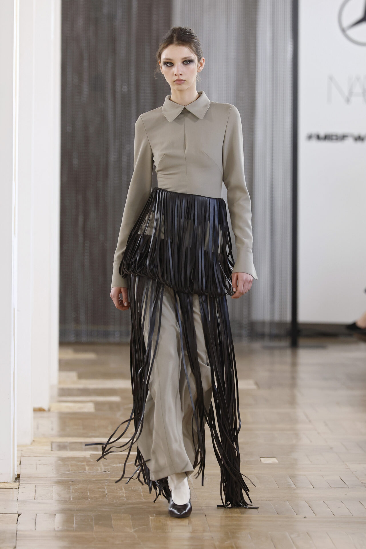 Ernesto Naranjo. funda su firma en 2018 después de ganar el Mercedes Benz Fashion Talent en Madrid Fashion Week. “The Return – The Celebration” marca el regreso de Ernesto Naranjo a la MBFWM en formato desfile después de años presentando su trabajo en Londres, París, Milán o Barcelona. Es un retorno cargado de memoria y transformación: volver al lugar donde comenzó (mi primer desfile en EGO en 2014) desde un lenguaje más maduro, más físico y más libre. Regresar es, en sí mismo, un acto de celebración.
