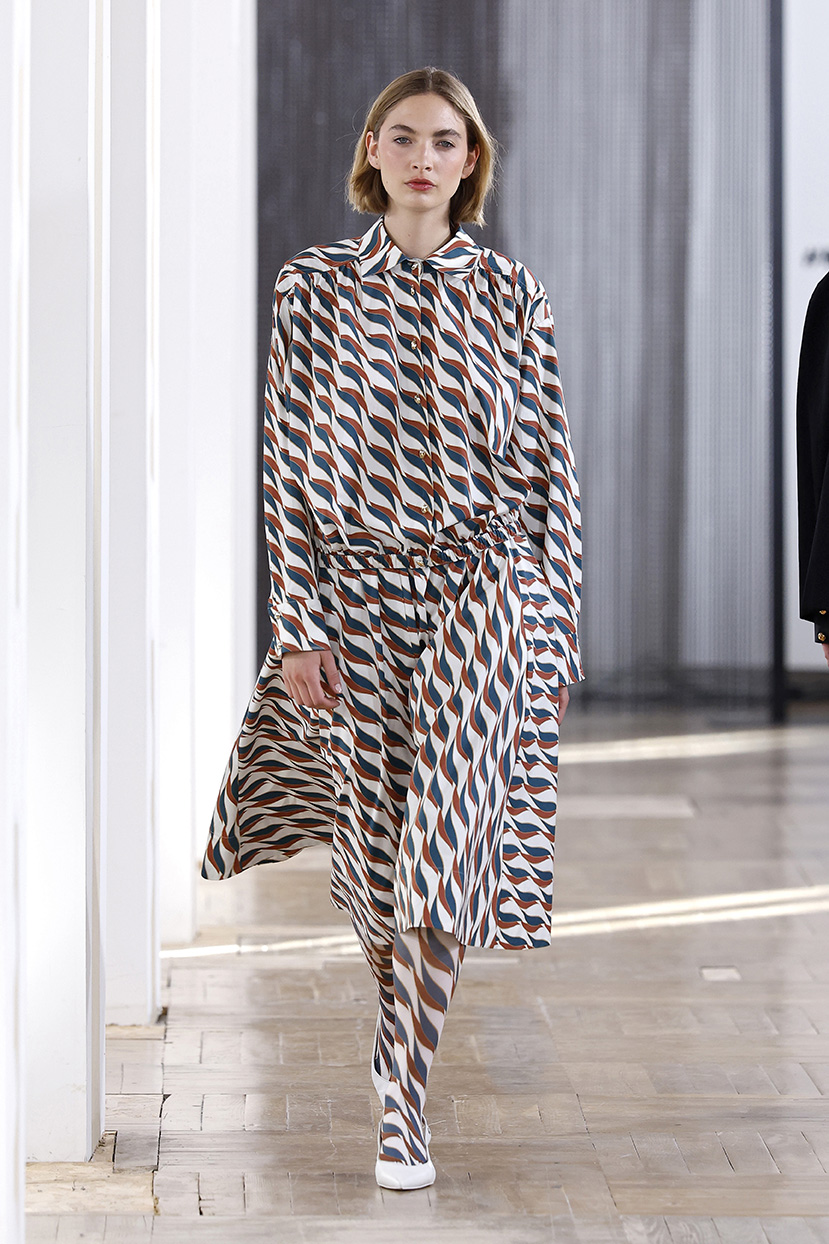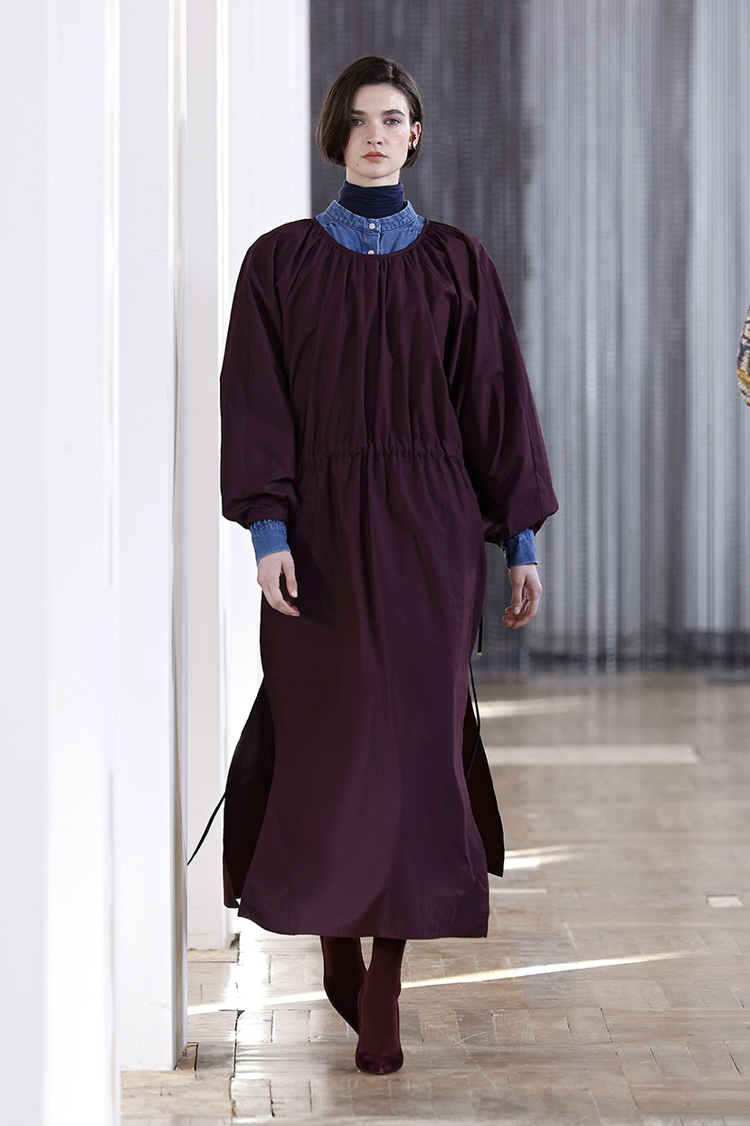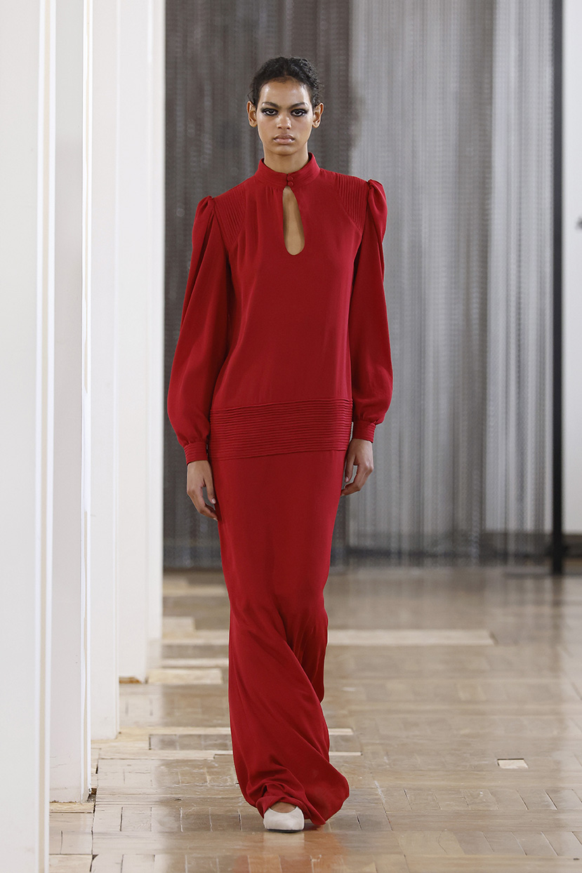 Aquí son las piezas de esta propuesta para mujer y hombre las que cobran volumen con cada pliegue, relieve o color como una metáfora de la emoción y la expresión. La vibración atraviesa el cuerpo y se convierte en ritmo, en textura, en movimiento. La paleta de color fluye entre la potencia del rojo cereza, el granate, el gris oscuro y el negro y la sutileza del rosa palo, el beis y el marfil. Los tejidos que destacan incluyen lana fría, paño natural, punto, el crepé, terciopelo, tafetán y telas de sastrería inglesa como el Príncipe de Gales.