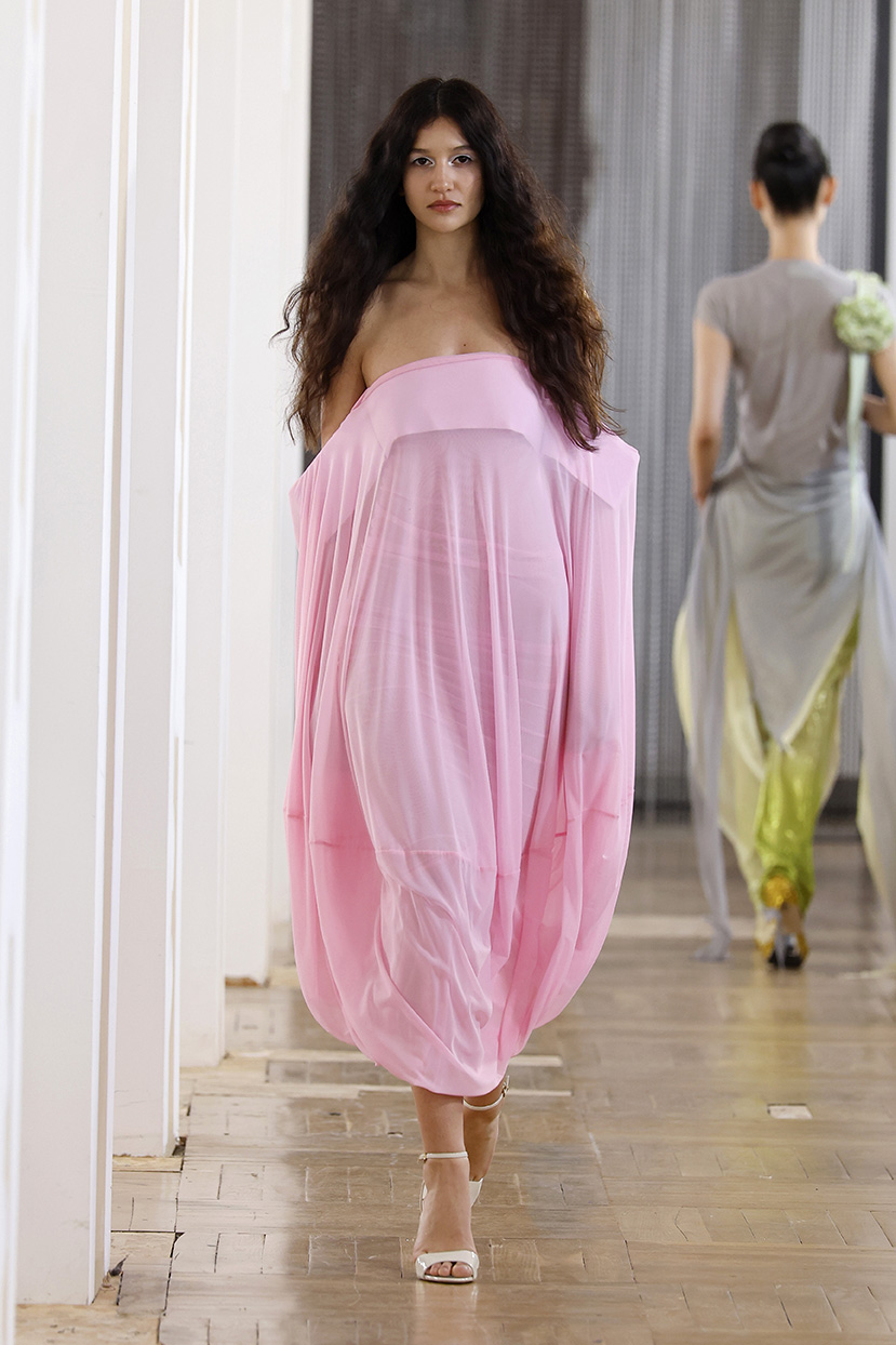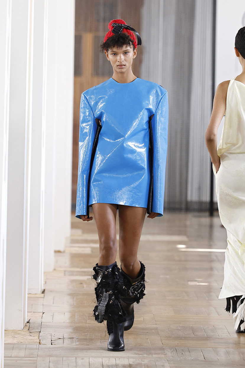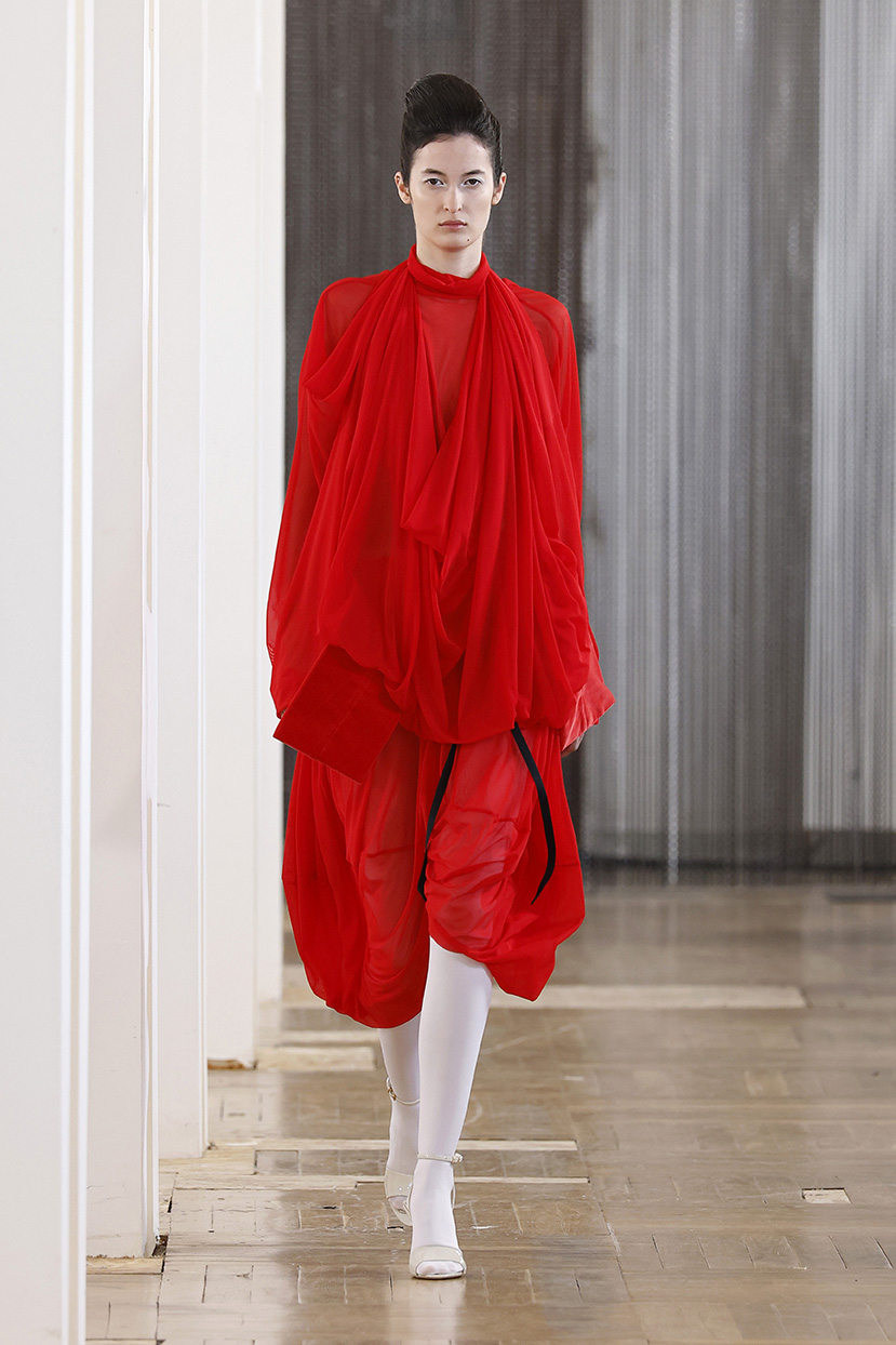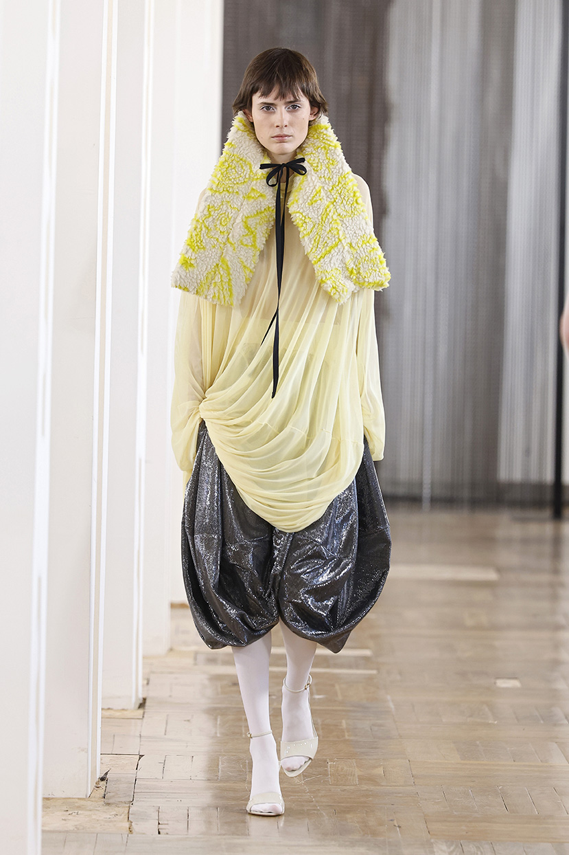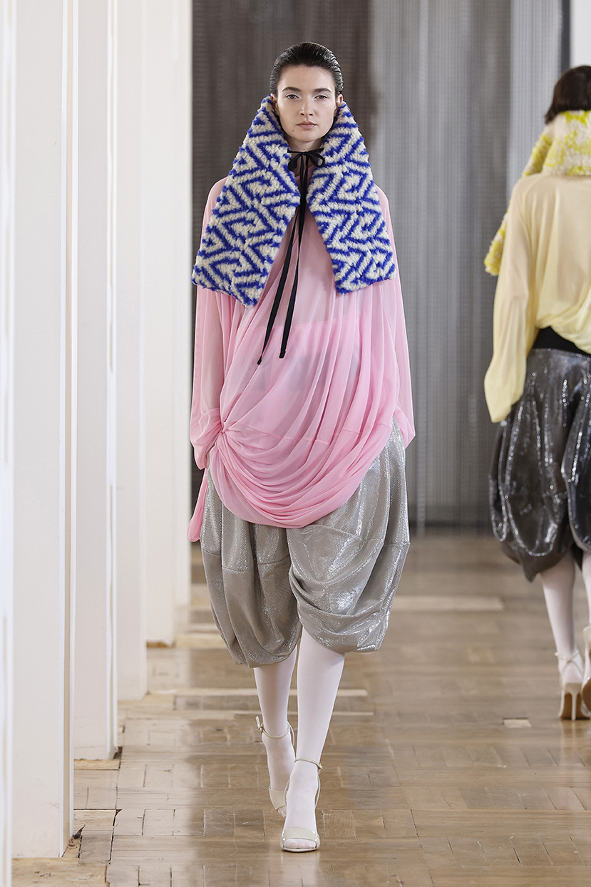 Los volúmenes evocan la herencia escultórica de Balenciaga y la arquitectura que crean en la espalda ciertos elementos del vestir tradicional japonés, como el Obi.