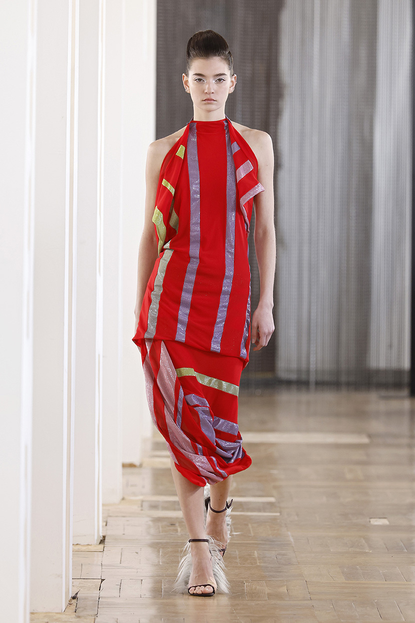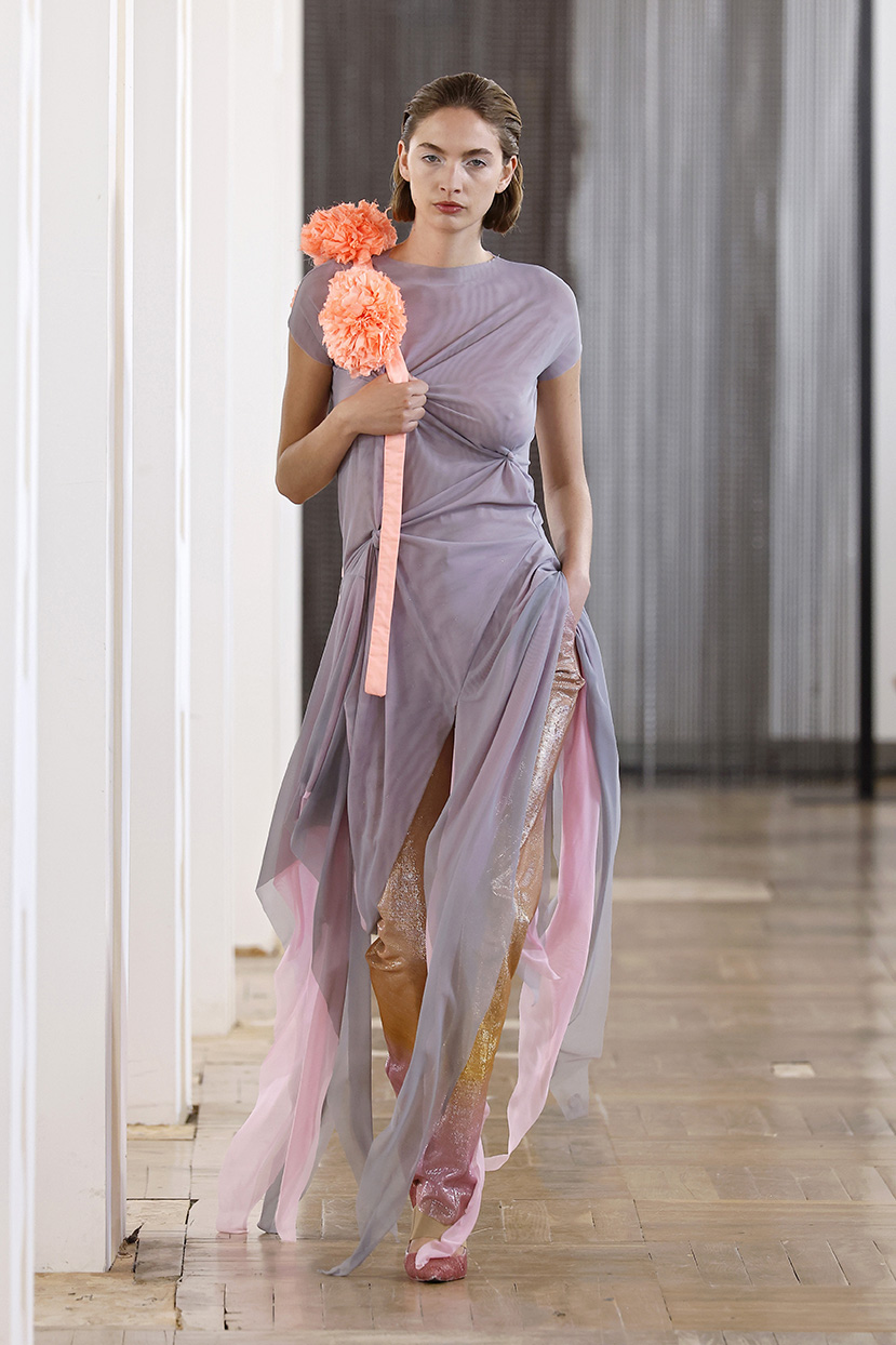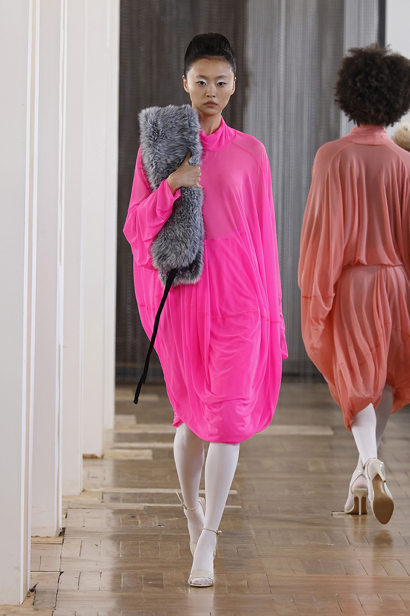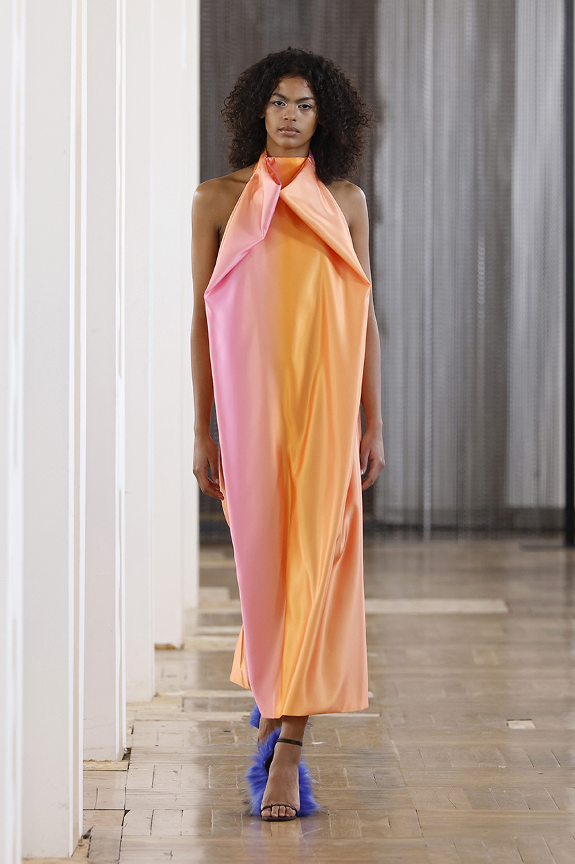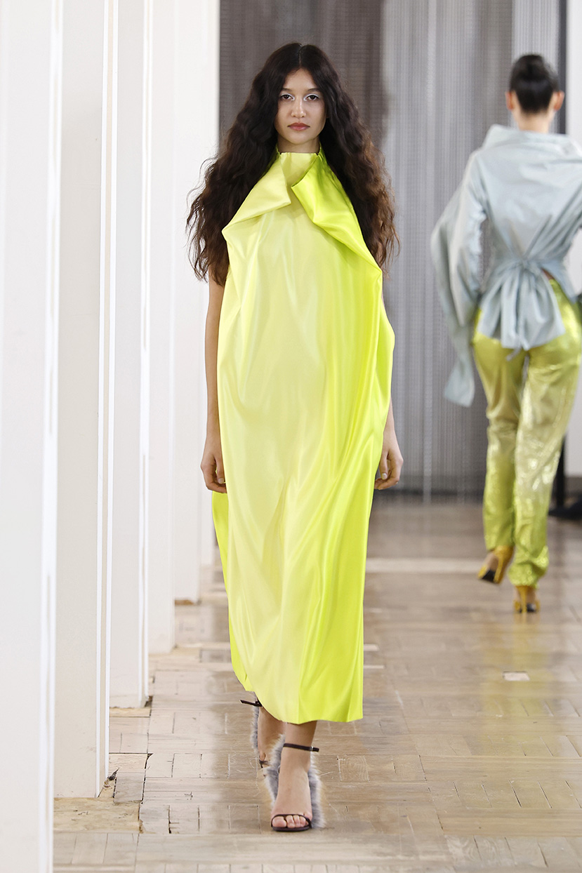 Los volúmenes evocan la herencia escultórica de Balenciaga y la arquitectura que crean en la espalda ciertos elementos del vestir tradicional japonés, como el Obi.