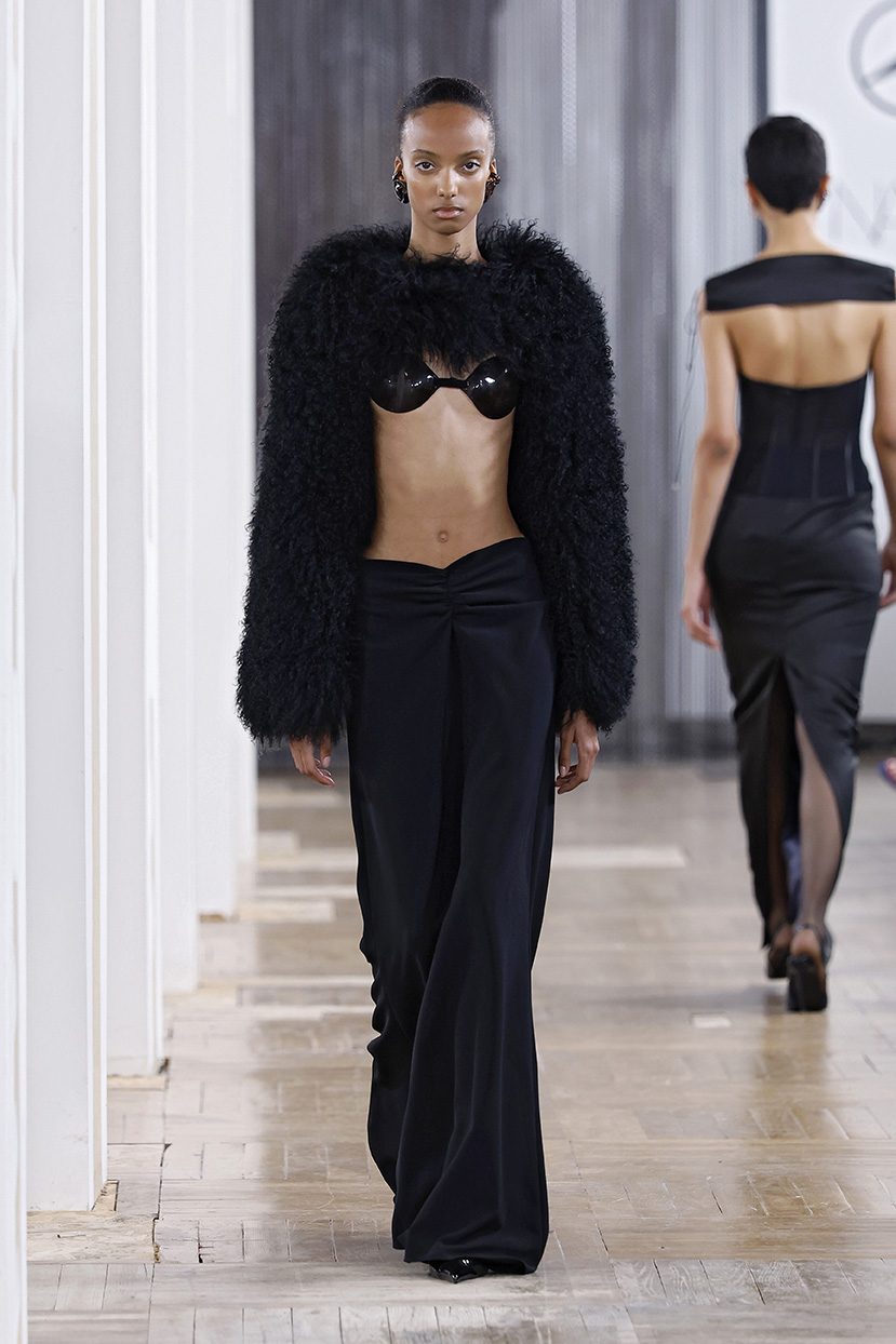 La colección nace de un diálogo entre el cuerpo, la materia y el gesto. Entre las referencias en las que se ha inspirado Naranjo, aparece la radicalidad de Santa Ángela de la Cruz, cuyas obras dobladas, desplazadas o “colapsadas” inspiran volúmenes que parecen tensarse, plegarse o ceder sobre sí mismos; y la precisión estructural de Gillian Theobald, cuya repetición geométrica y exploración de la luz se traducen aquí en paneles ensamblados, ritmos modulares y siluetas arquitectónicas.