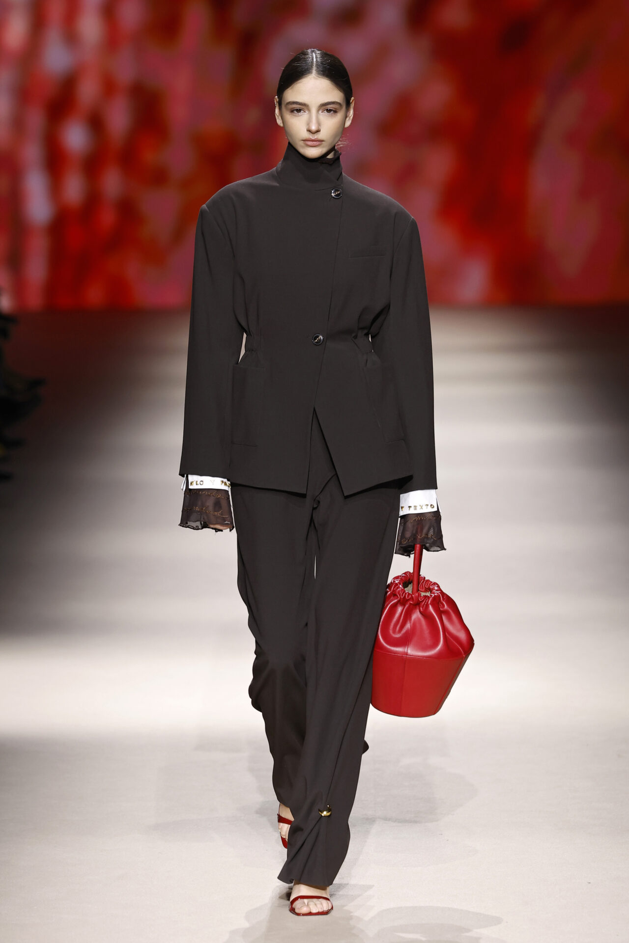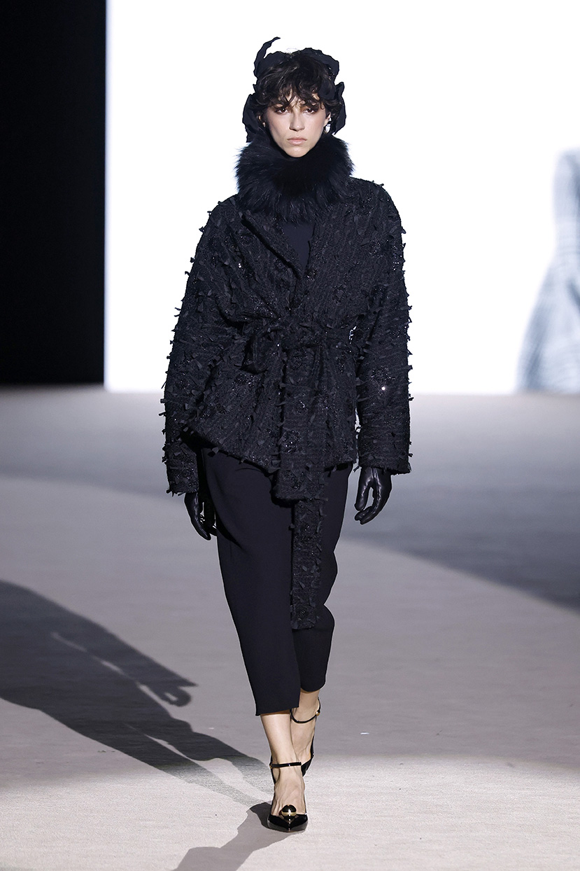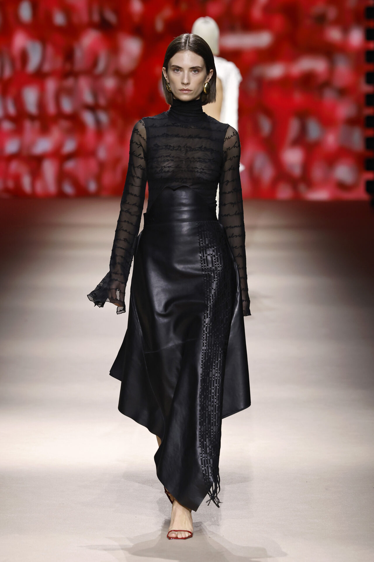 La colección “Blacknoir” se sumerge en la profunda elegancia del color negro, explorando sus matices y su capacidad para evocar misterio y sofisticación, inspirada en la audaz investigación del maestro del arte contemporáneo Pierre Soulages, quien llevó a cabo una exploración radical del negro como fuente de luz. modo de volantes