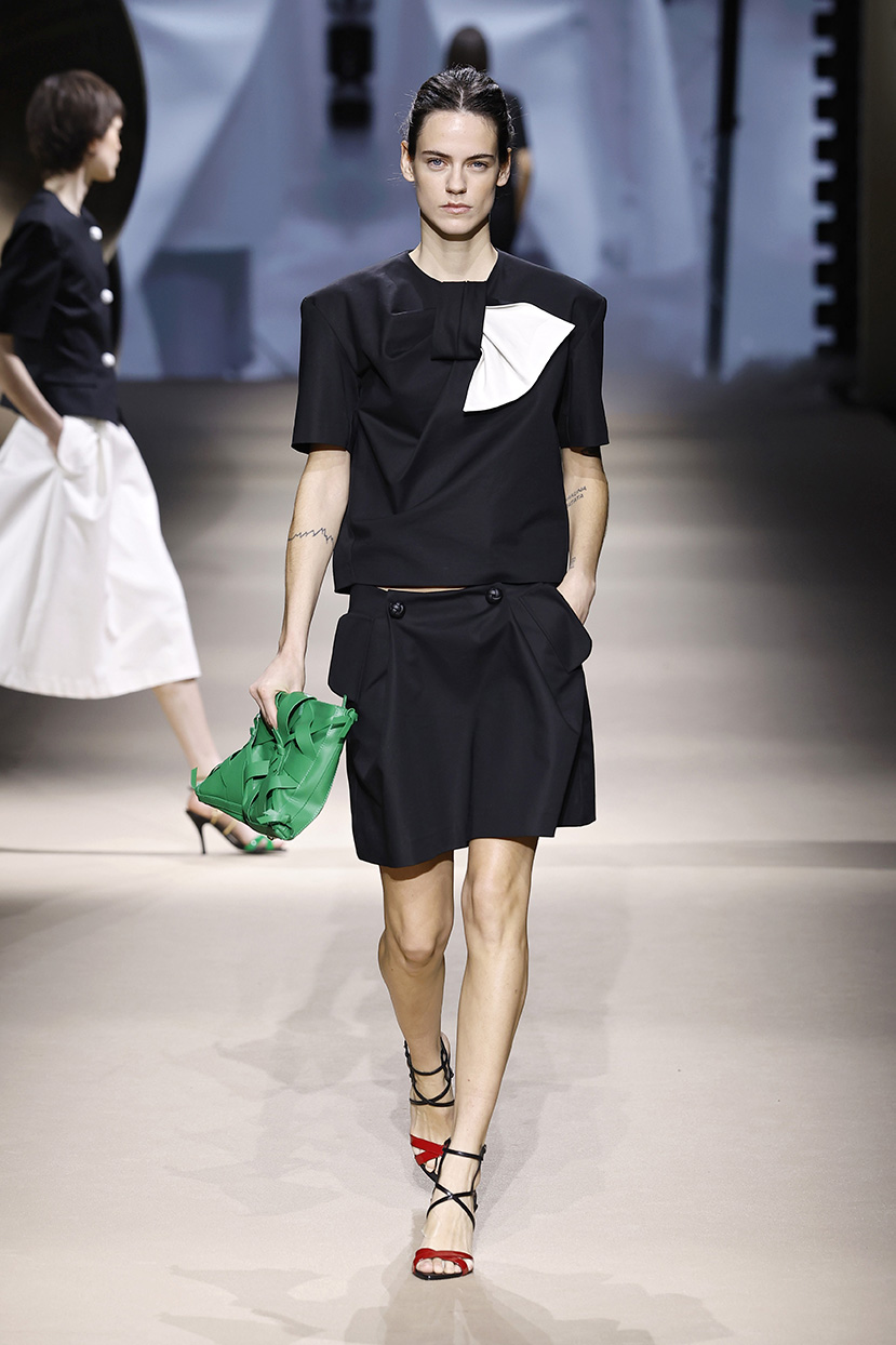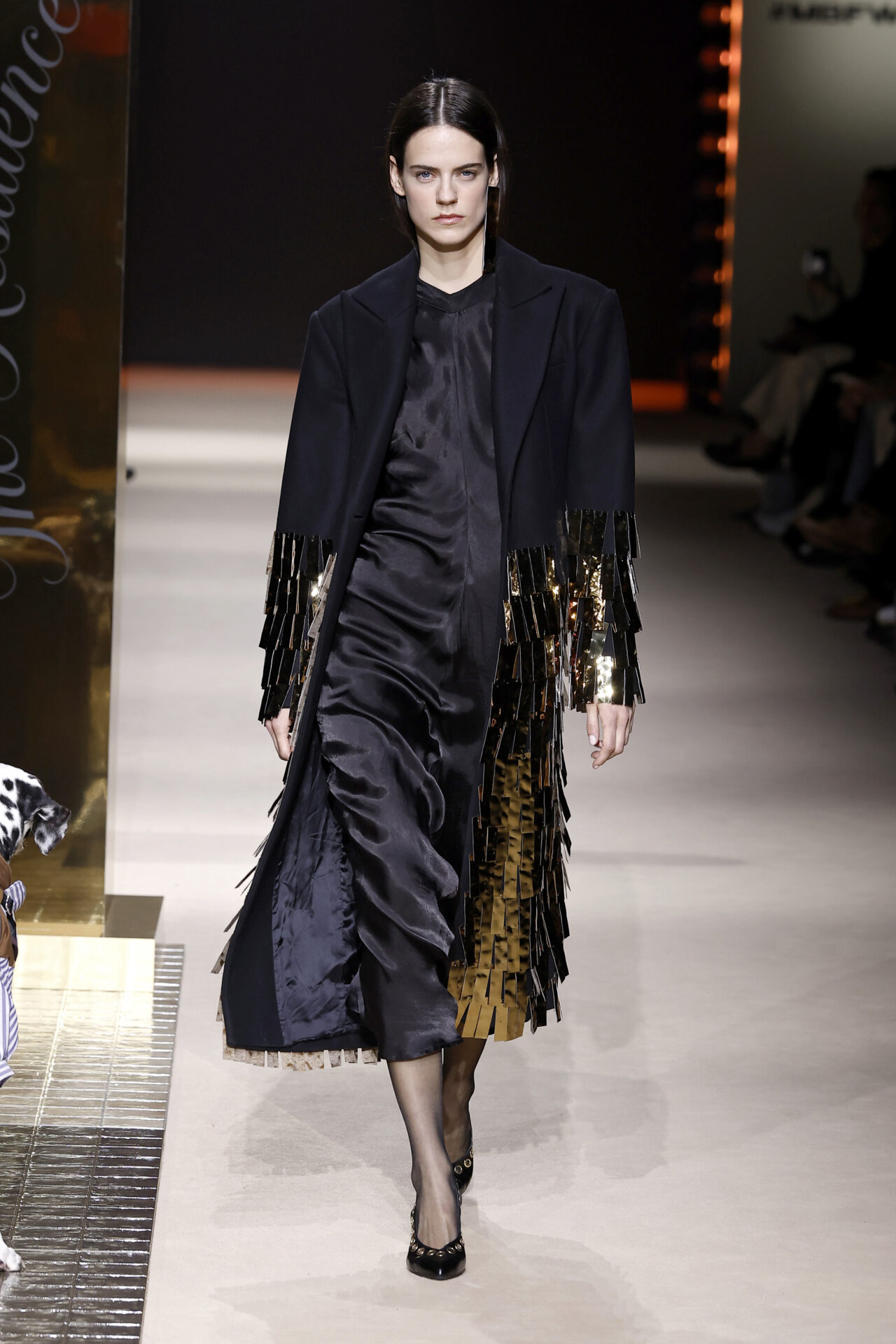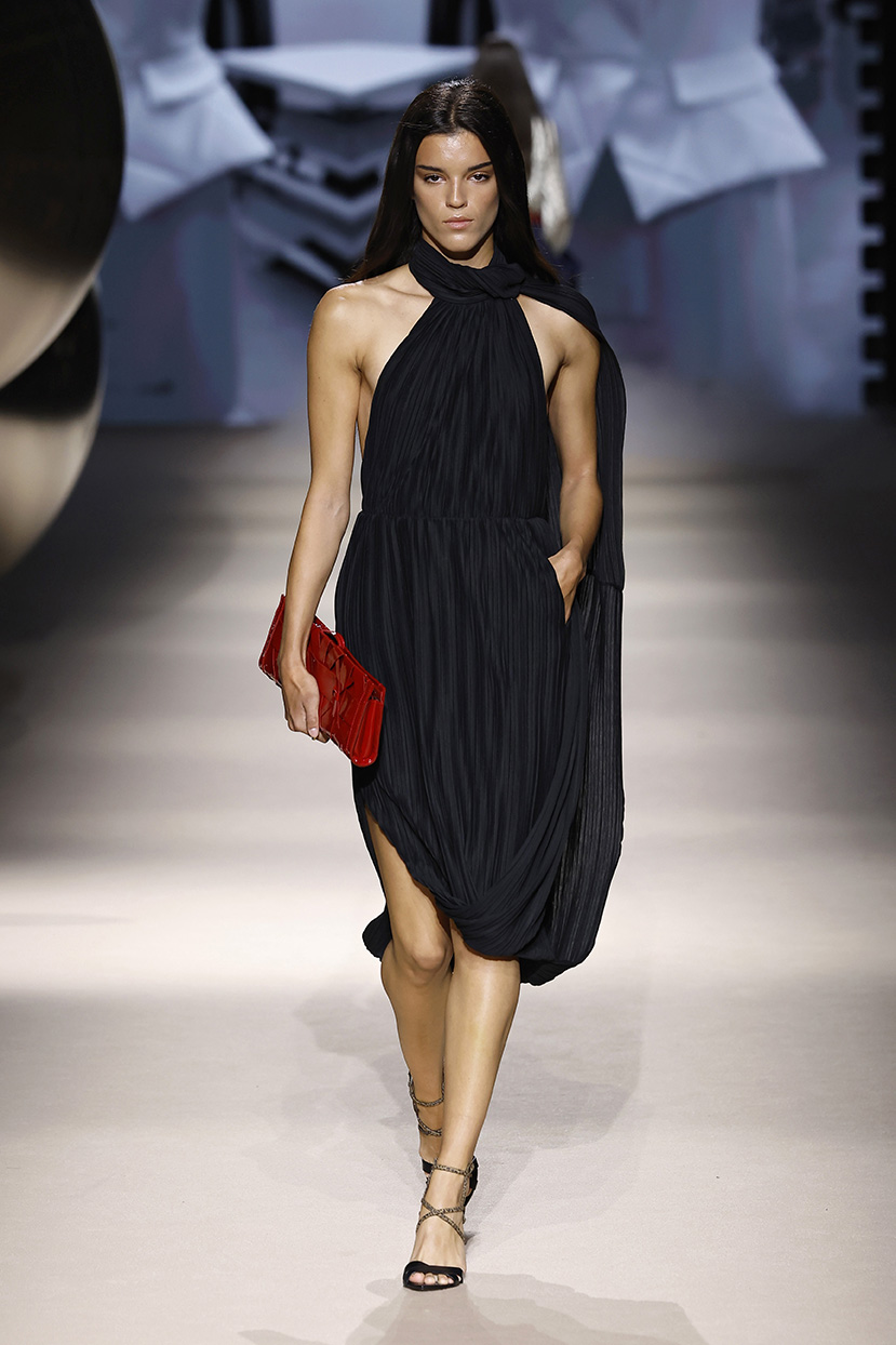 La colección “Blacknoir” se sumerge en la profunda elegancia del color negro, explorando sus matices y su capacidad para evocar misterio y sofisticación, inspirada en la audaz investigación del maestro del arte contemporáneo Pierre Soulages, quien llevó a cabo una exploración radical del negro como fuente de luz. modo de volantes