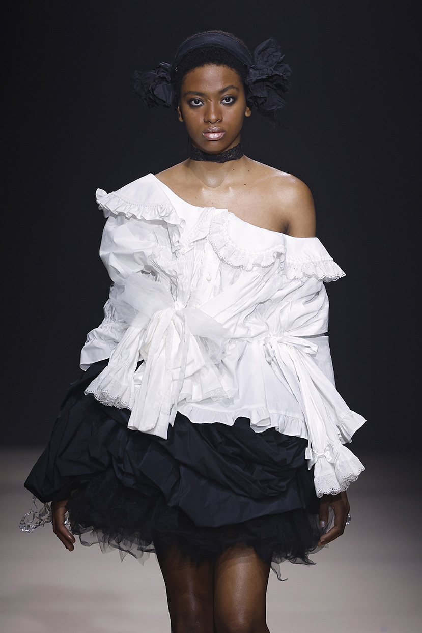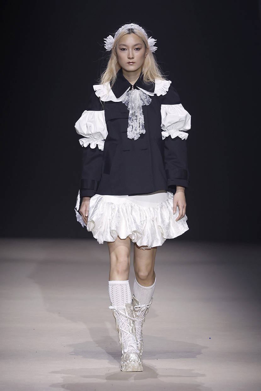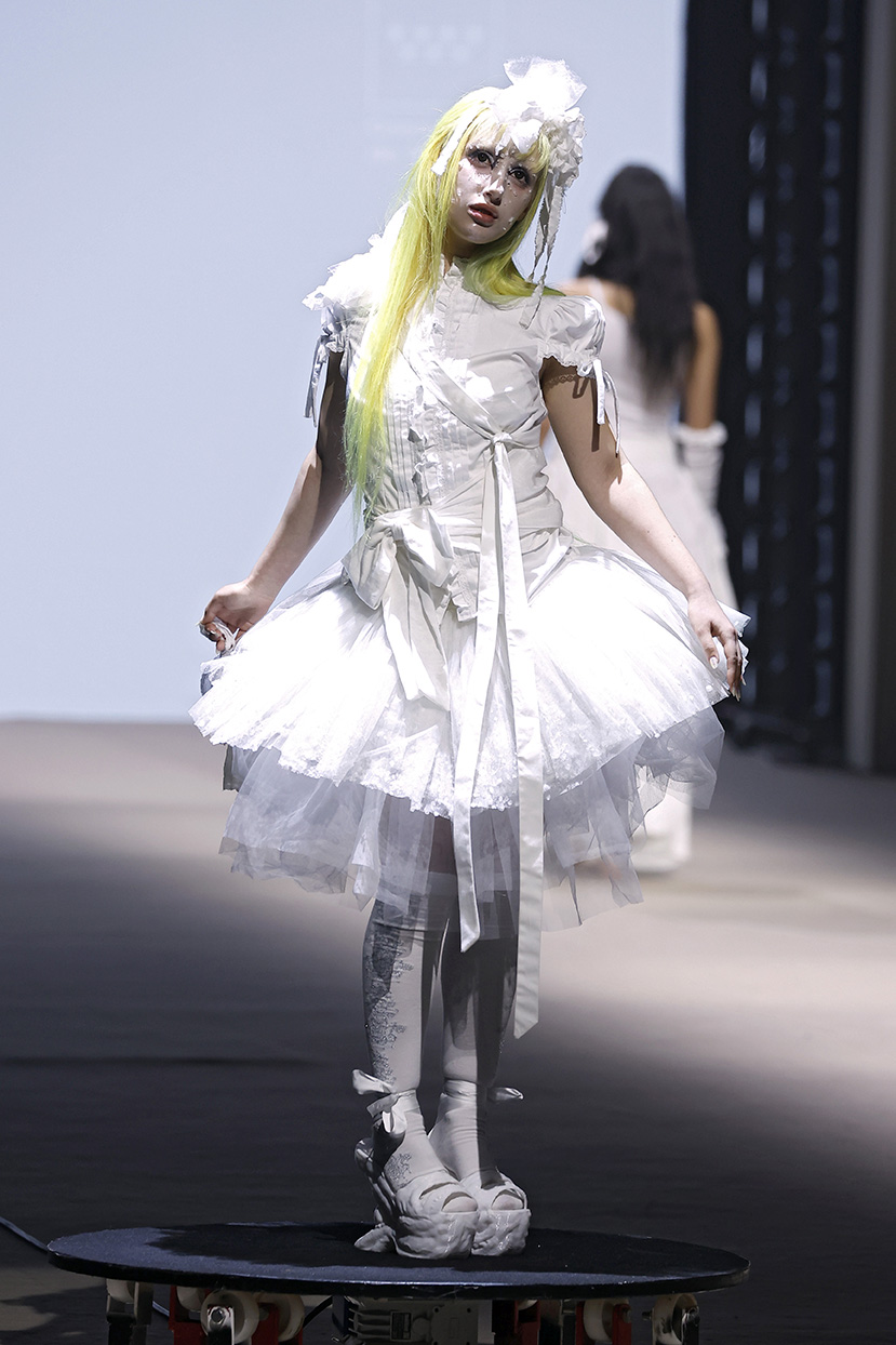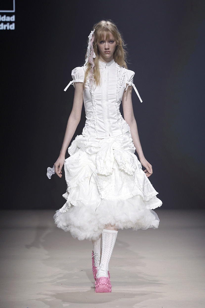 La colección gira en torno al concepto de “The Dreamed Dress”, un vestido blanco que representa un ideal inalcanzable de pureza, belleza y perfección. A partir de él, se desarrollan prendas de inspiración en los estilos Lolita y Gothic Lolita que combinan volantes, enaguas y siluetas románticas con una paleta cromática en blanco y negro y tejidos intervenidos, cristalizados y encapsulados.